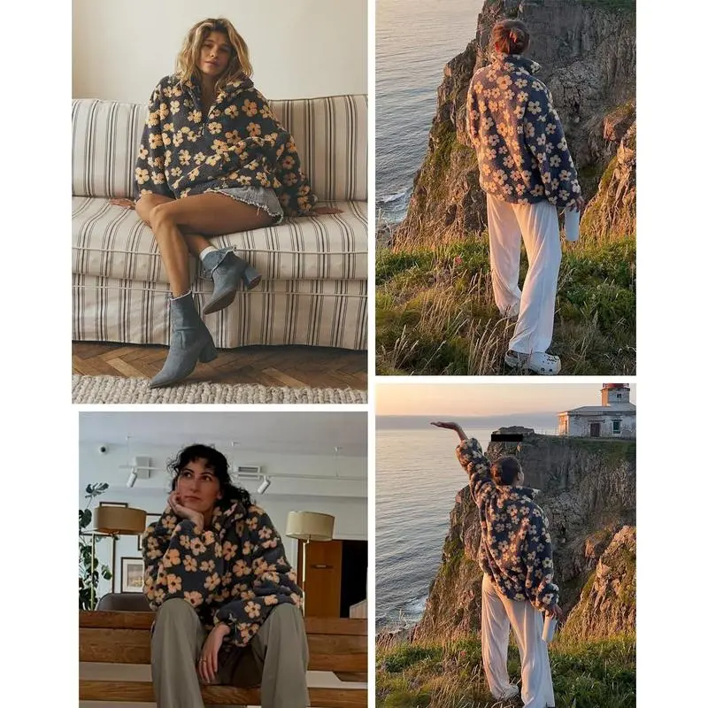 5. Fleece Half Zip Fall Fleece Sweatshirts Cute Floral Printed Half Zip Pullover Long Sleeve Y2k Sherpa Coat With Pocket Half Zip Fleece Womens Fleece Pullover Sherpa Pullover Womens