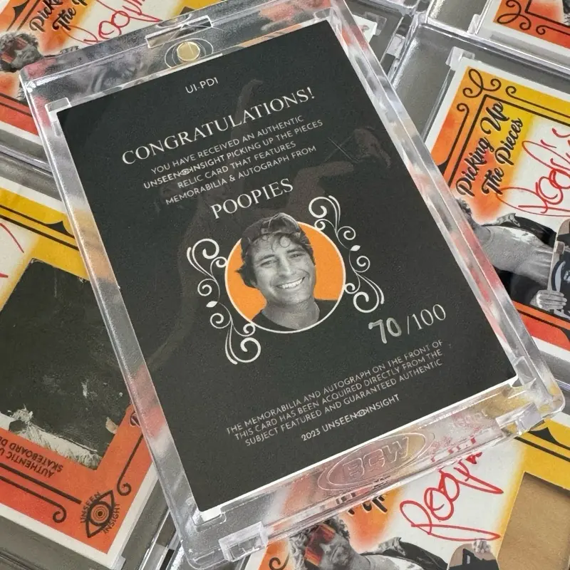·Contains an actual piece of Poopies’ customized skateboard embedded inside of the card