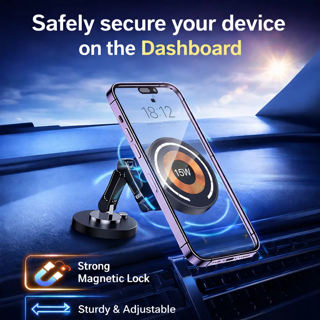 Meet the Electronic World 15W Magnetic Wireless Car Charger Mount — a powerful MagSafe compatible car phone holder that keeps your phone secure, visible, and charging while you drive.