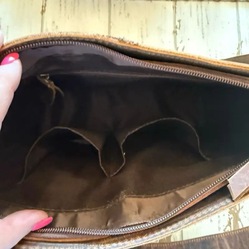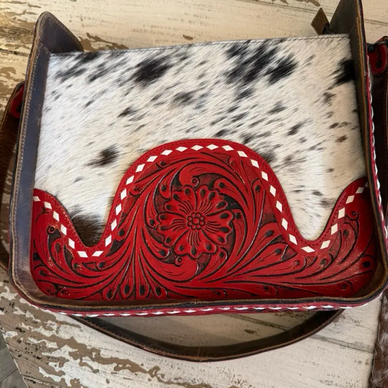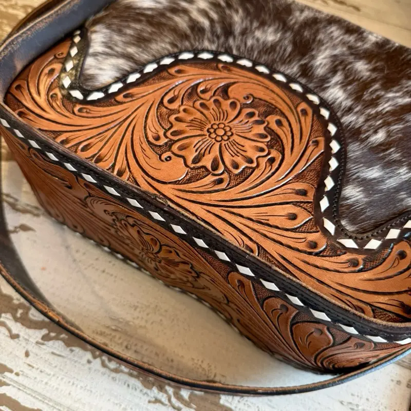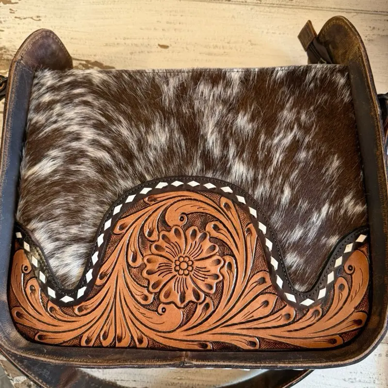 ·Material: Crafted from cowhide, this handbag offers a unique and authentic look. The tooled leather accents enhance its overall appeal. 🐄