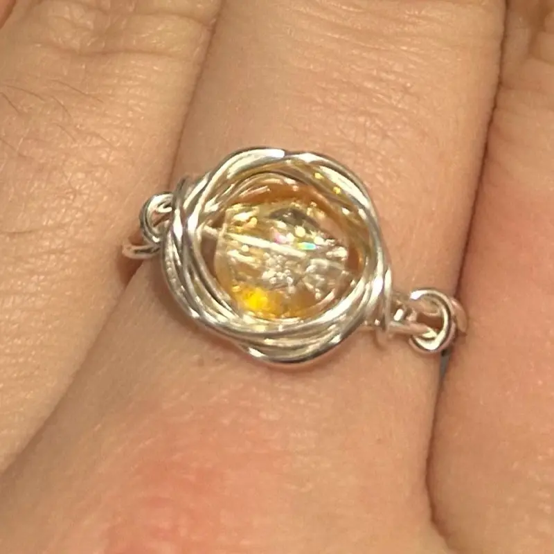 Wire wrapped rings with glass beads