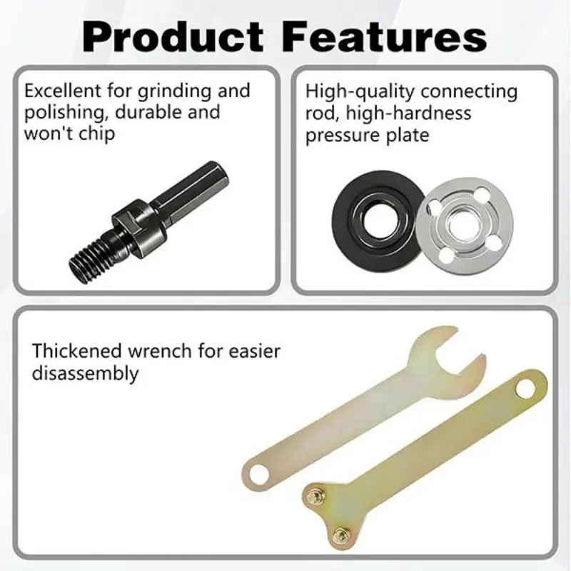 【Complete Set】: Includes a wrench and fits various grinding discs, sanding pads, and sponges for diverse tasks.