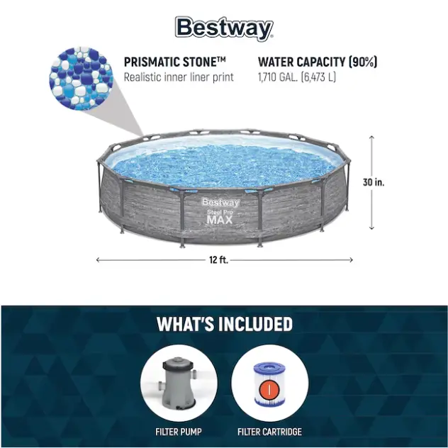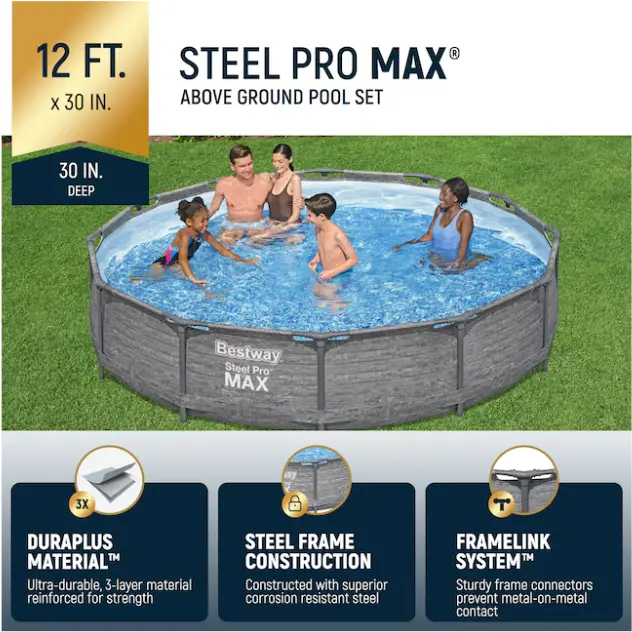 Bestway Steel Pro MAX 12 ft x 30 in above ground pool set provides family backyard summer fun and relaxation for all ages
