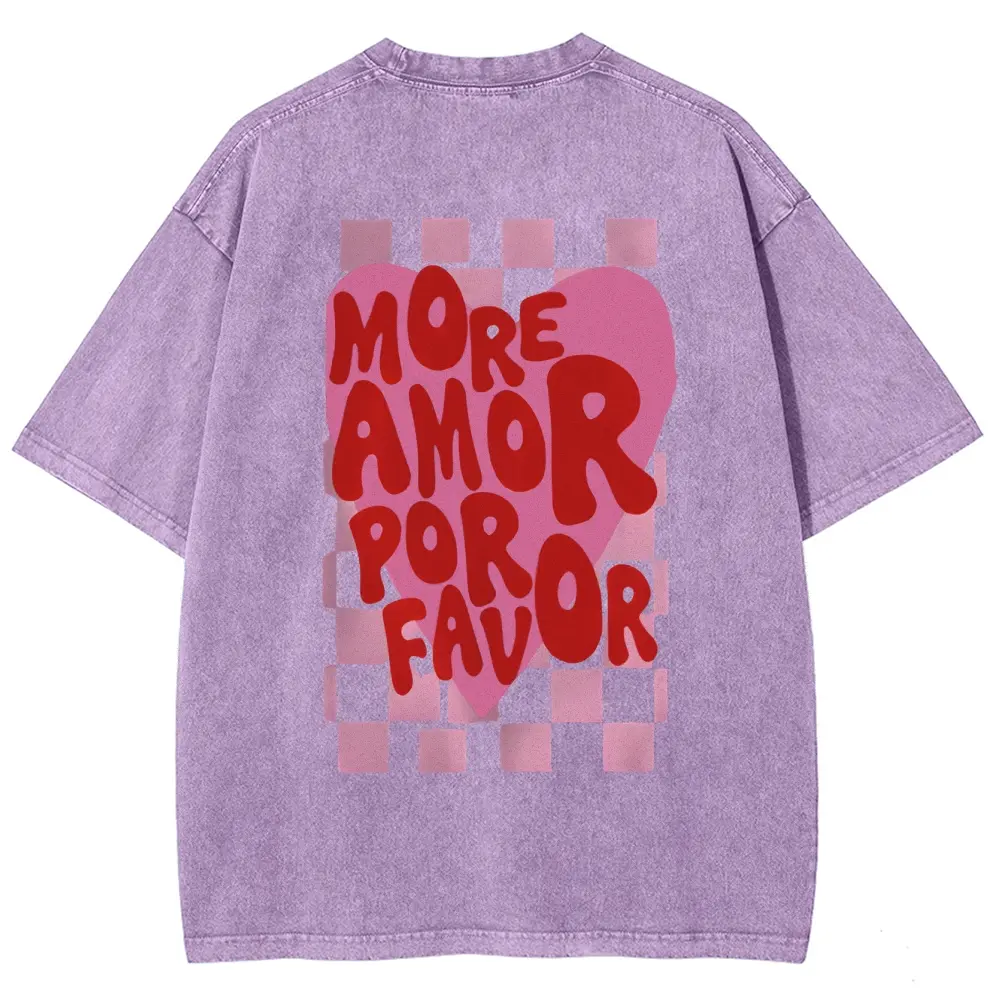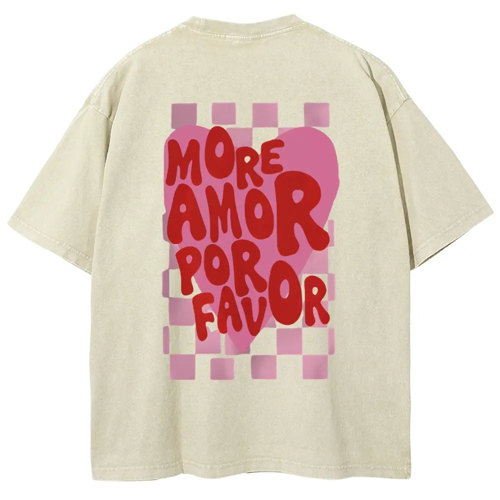 5. [Double-Sided Printing] Women'S Spring And Summer Retro Style Love Heart Checkerboard MORE Print Casual Short-Sleeved Round Neck Women'S T-Shirt