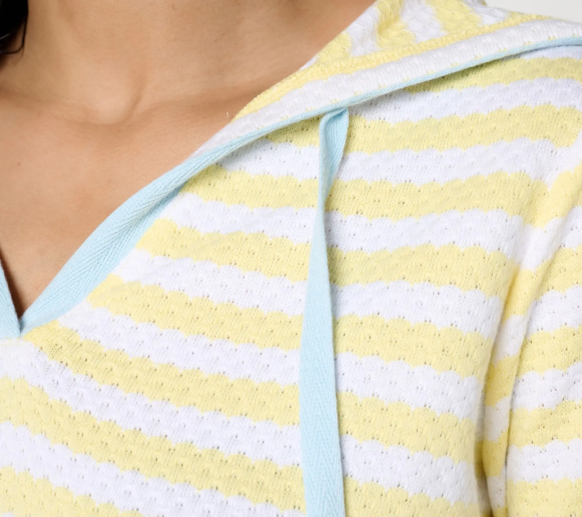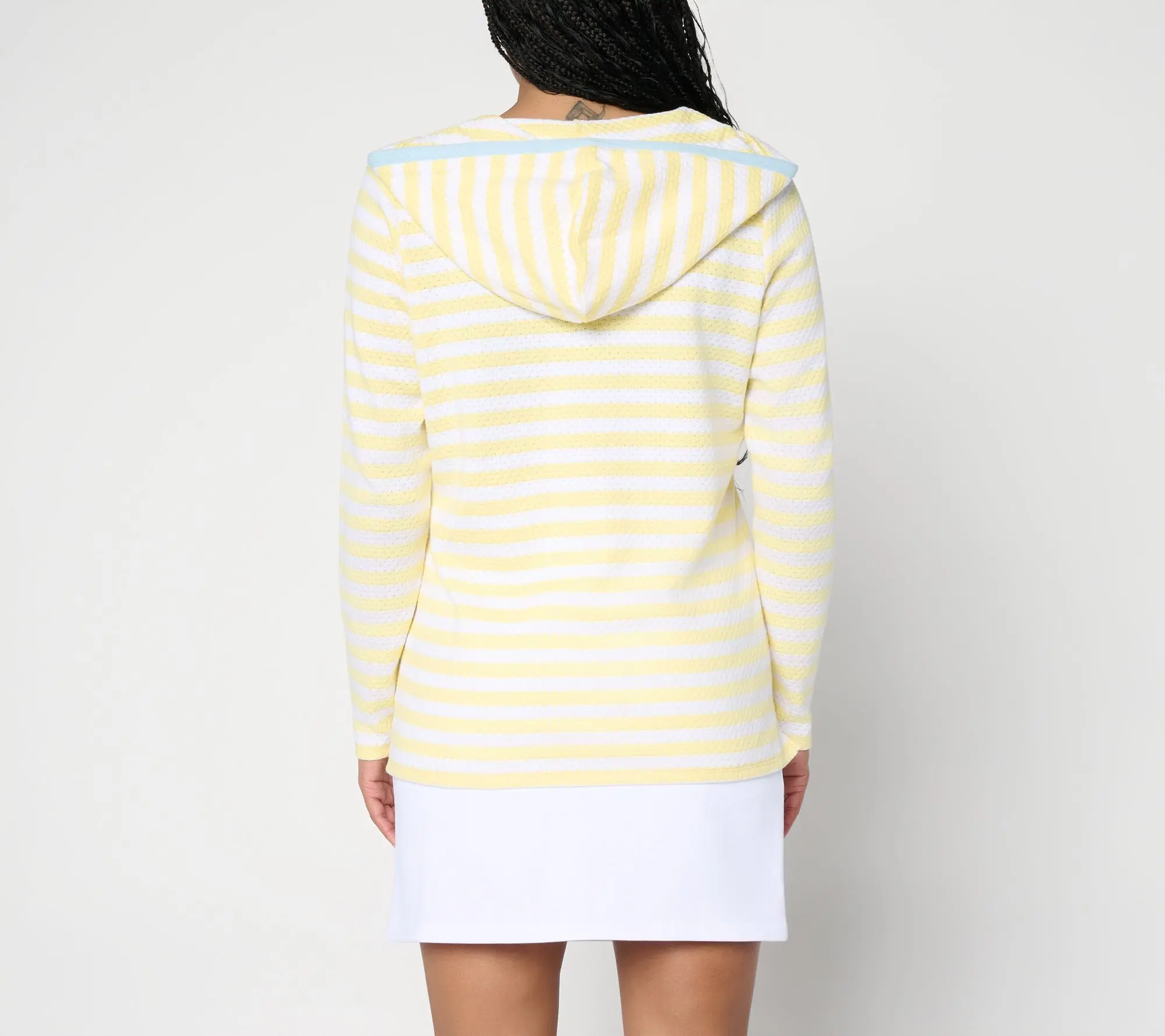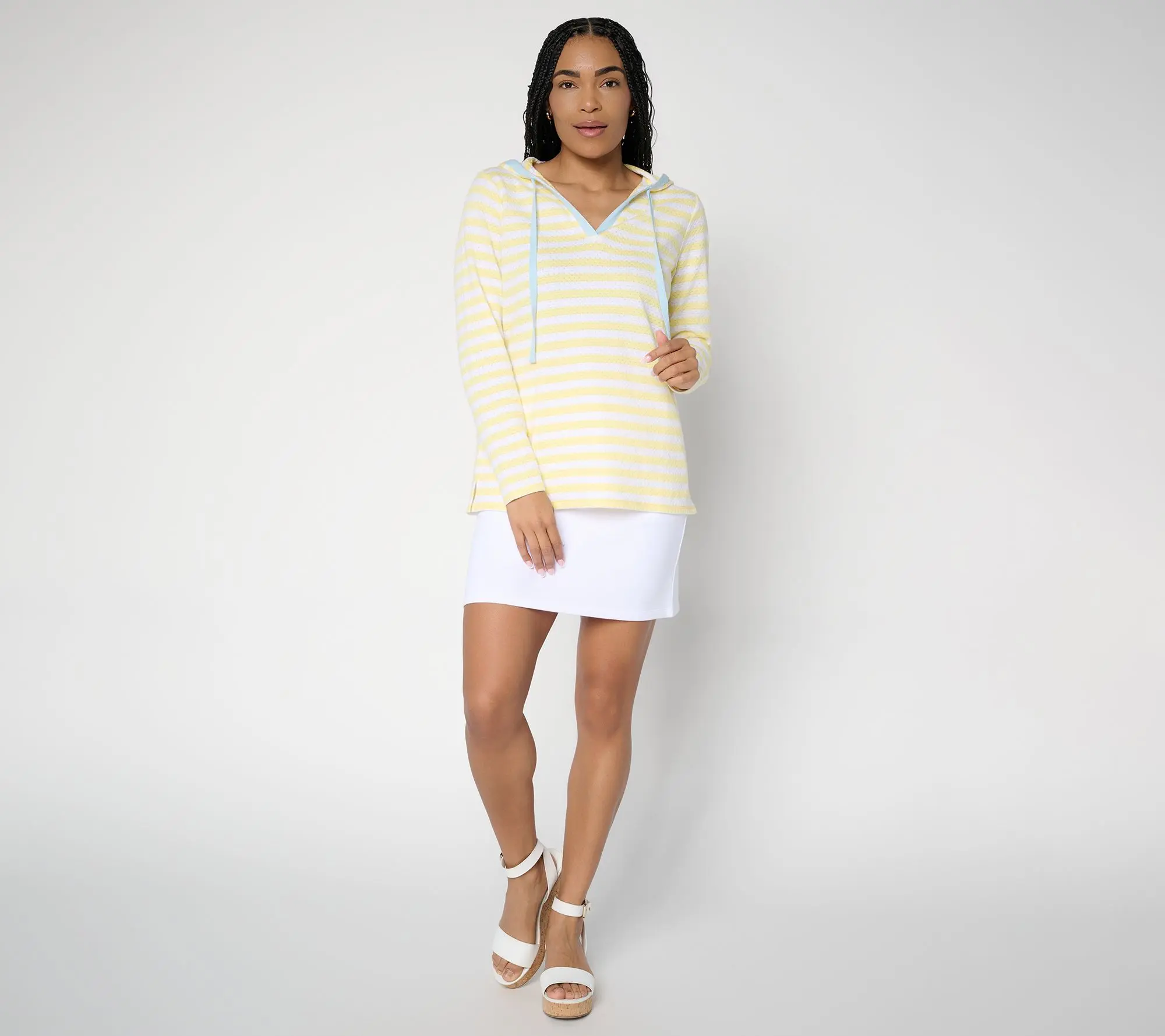 Belle Beach by Kim Gravel Nautical Knit Contrast Trim Striped Hoodie