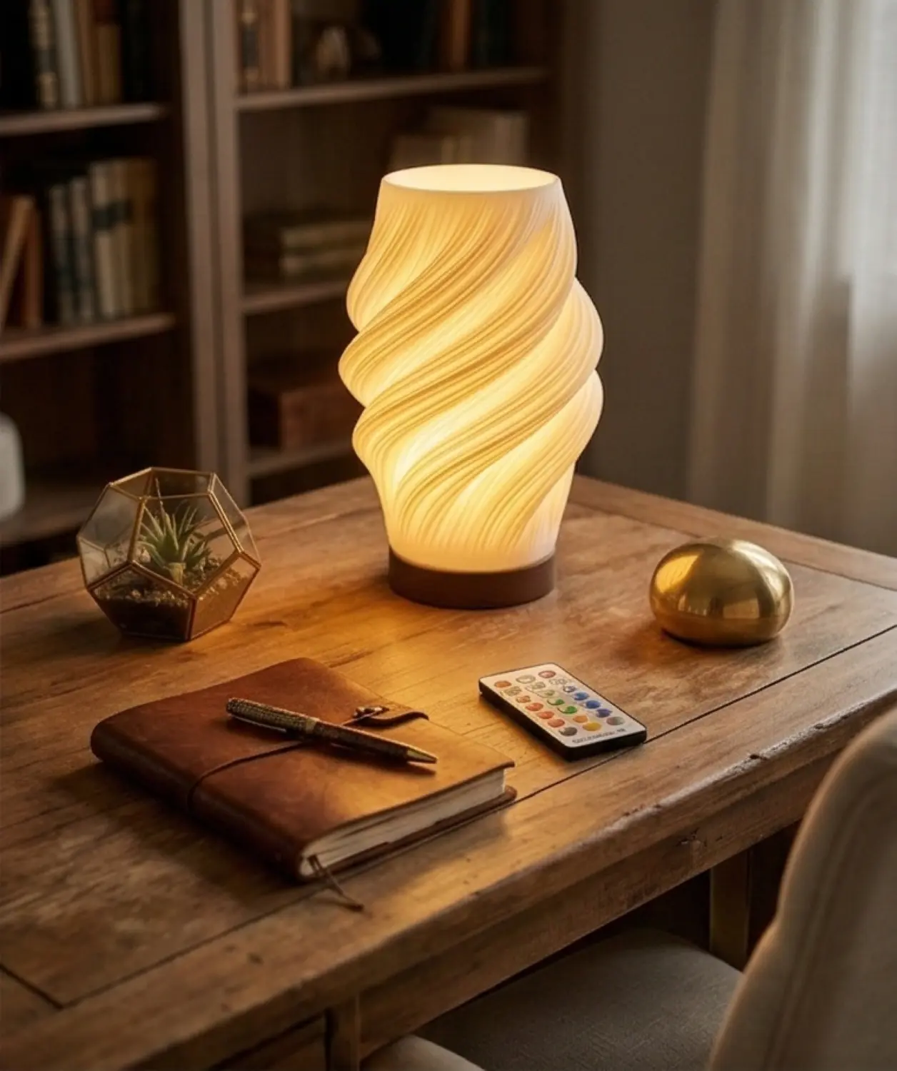 LARA Lamp – Modern 3D Printed Spiral Table Lamp with RGB LED Bulb & Remote, Ambient Bedside Light, Unique Nightstand Decor, Handmade 2026.
