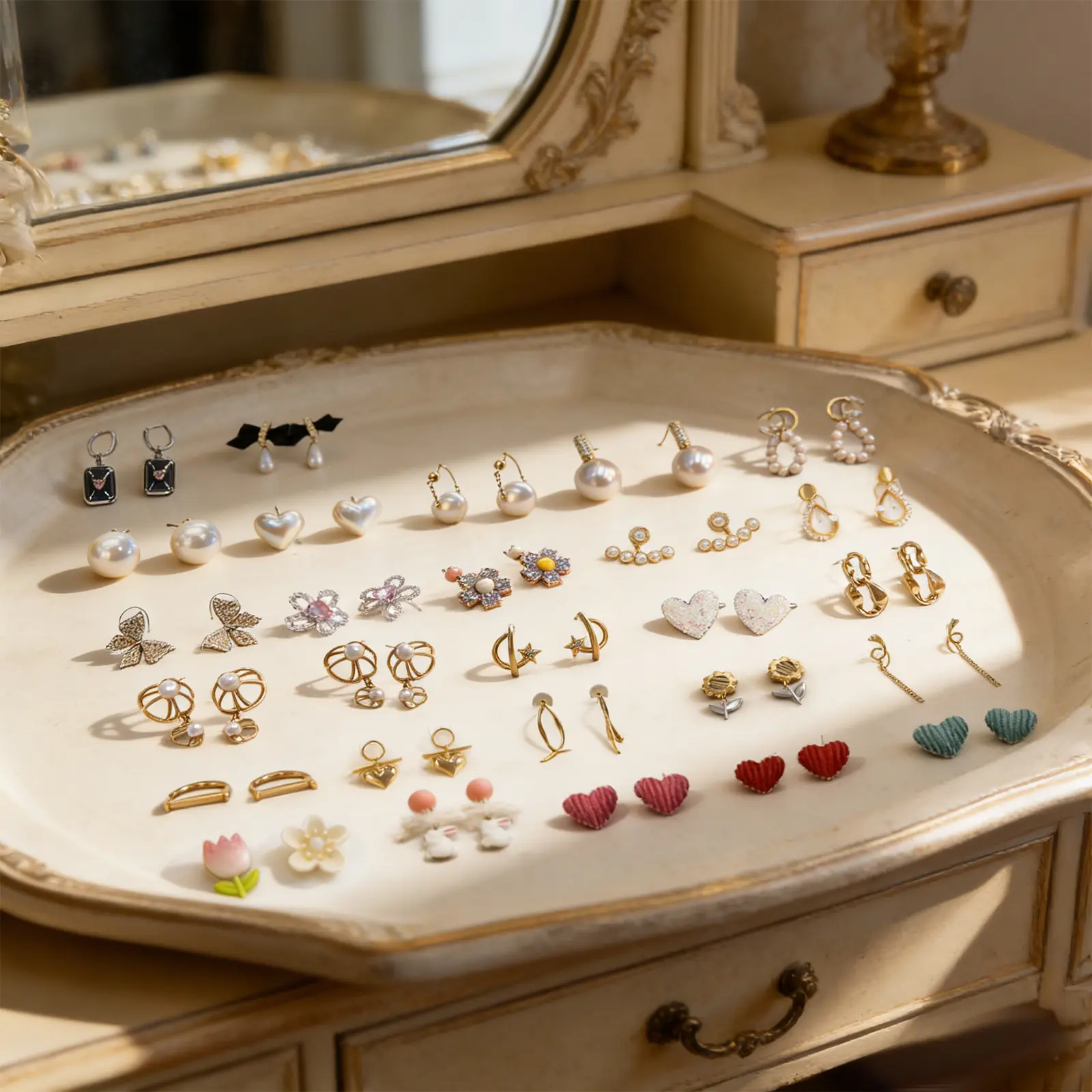 This 6-pair random stud earring set is designed for women and perfect for multiple piercings. Hypoallergenic, stylish and lightweight, it is an ideal jewelry gift for daily wear.