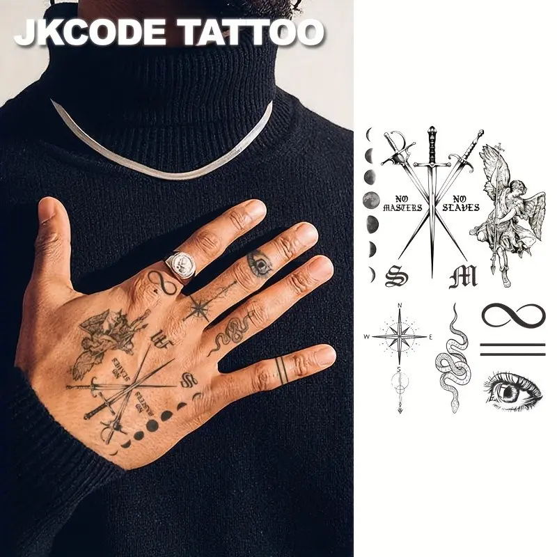 Herbal Hand Tattoo Stickers Set, Bat Letter Poison Snake Sun Polar Star Sword Eye Vintage Style Temporary Tattoos Gift