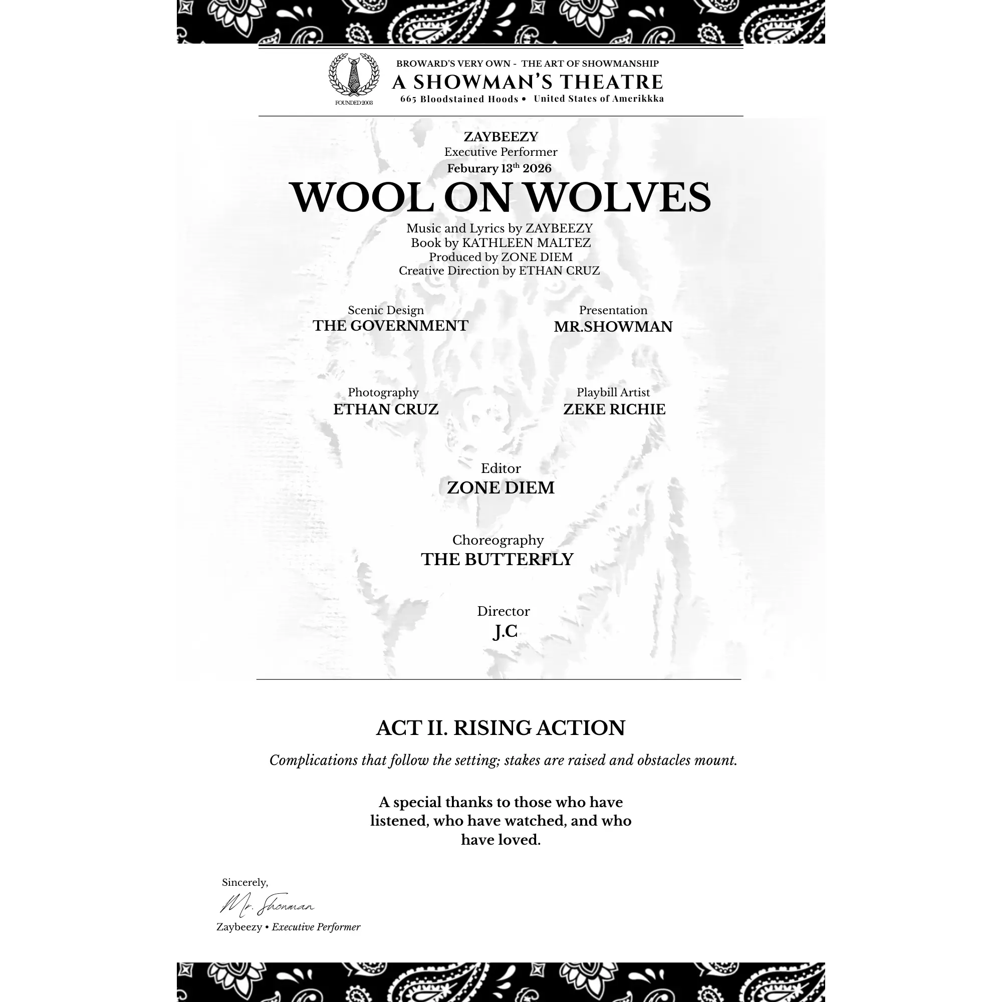 mr. showman presents: Wool On Wolves Poster - Playbill Print