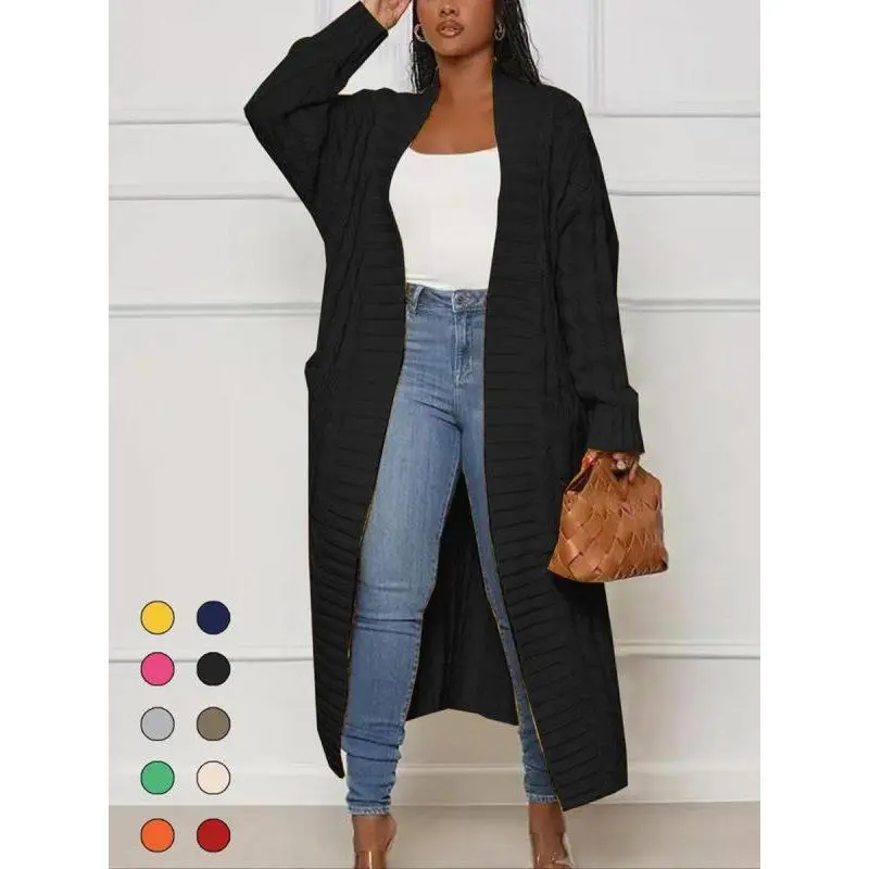 ??Women's Solid Color Textured Drop Shoulder Pocket Longline Cardigan/Elevate your wardrobe with this casual open front long sleeve knitwear.Perfect for fall and winter, it's ideal for daily wear.The baggy design offers comfort and style.Pair it with jeans or leggings for a chic look.This women's knit clothing piece is versatile and easy to integrate into your collection./??Features & Benefits/Solid color design for a timeless appeal./Textured fabric adds depth and texture./Drop shoulder style for a relaxed fit./Includes pockets for practicality and style./Ideal for casual outings and everyday wear./??Perfect for Women/This cardigan is a must-have for women seeking comfort and style. It's a casual knit top that complements various outfits. Enjoy the convenience of a longline cut that drapes beautifully. Stay cozy and fashionable with this women's knitwear piece.