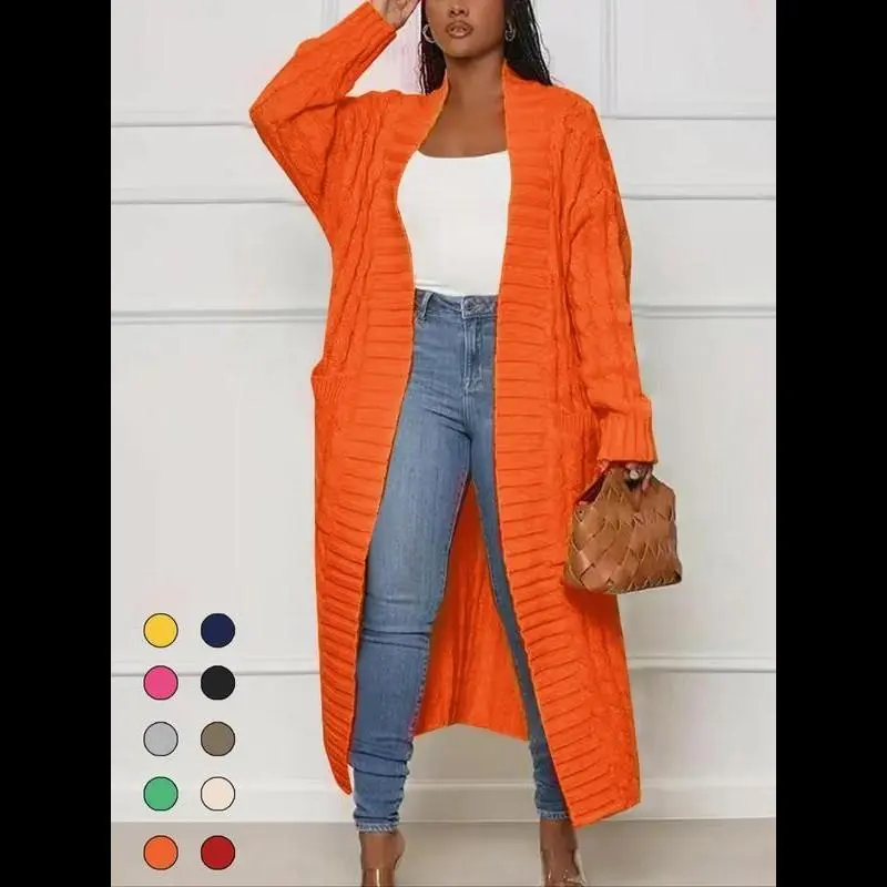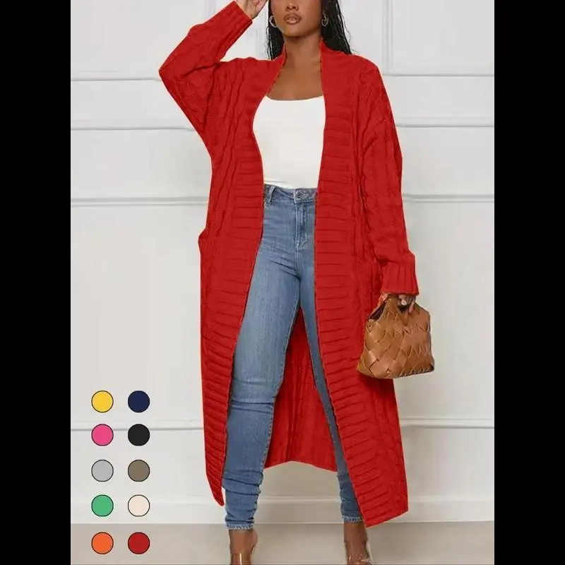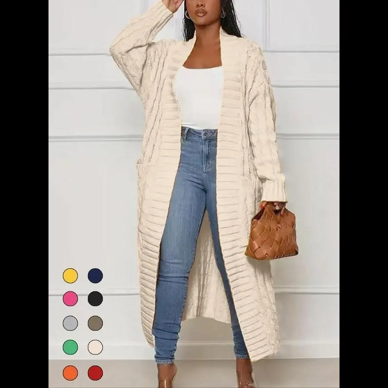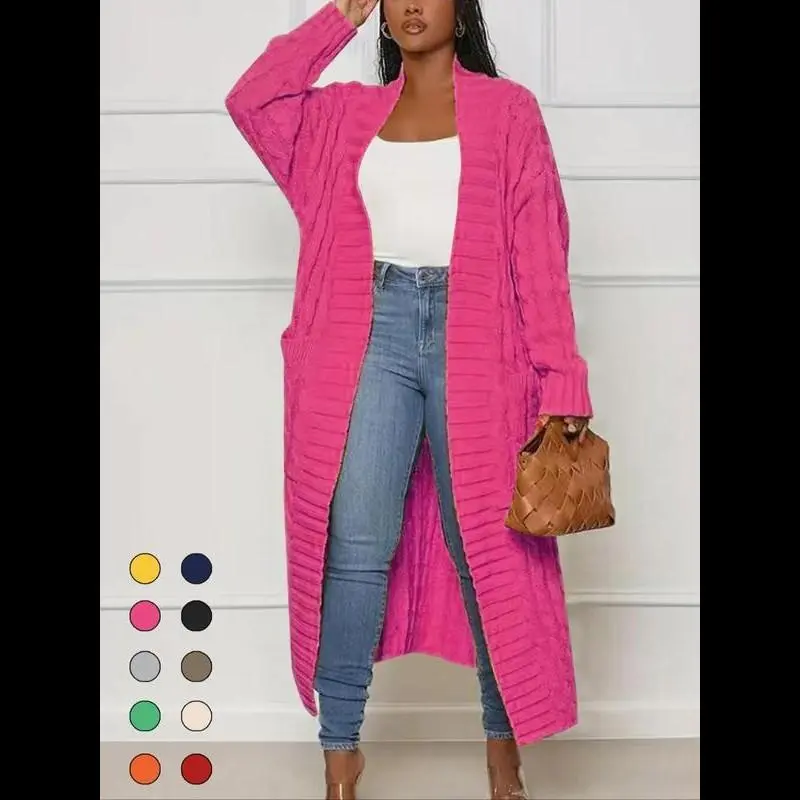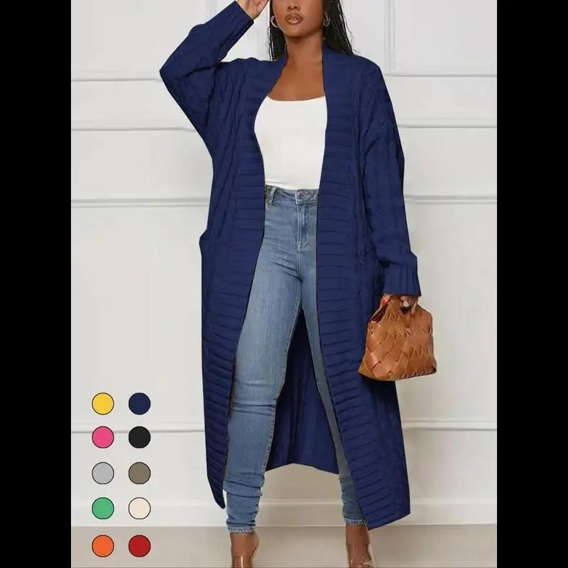 5. Women's Solid Color Textured Drop Shoulder Pocket Longline Cardigan, Casual Open Front Long Sleeve Knitwear for Fall & Winter, Women's Knit Clothing for Daily Wear, Lady Baggy Cardigans for Women, Womenswear, Comfy Fabric