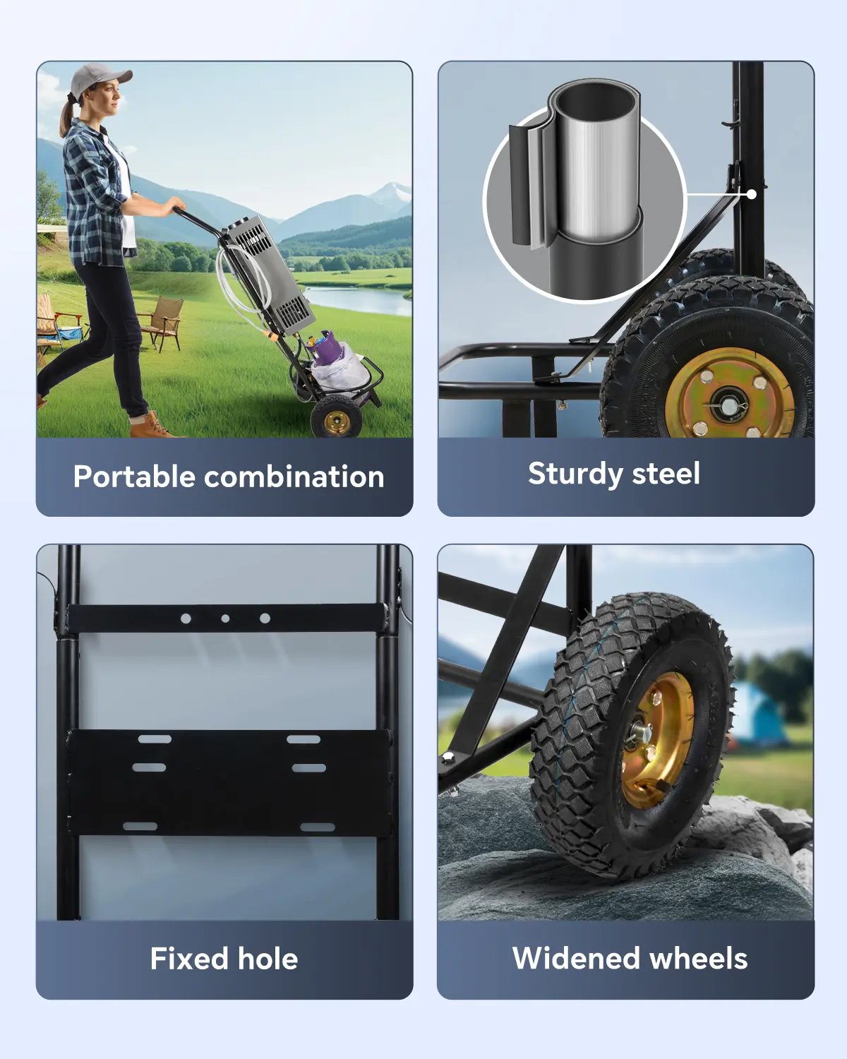 Adapts to Any Terrain: Equipped with 10-inch large wheels, the cart can travel over uneven surfaces, allowing your water heater to go wherever you need it.
