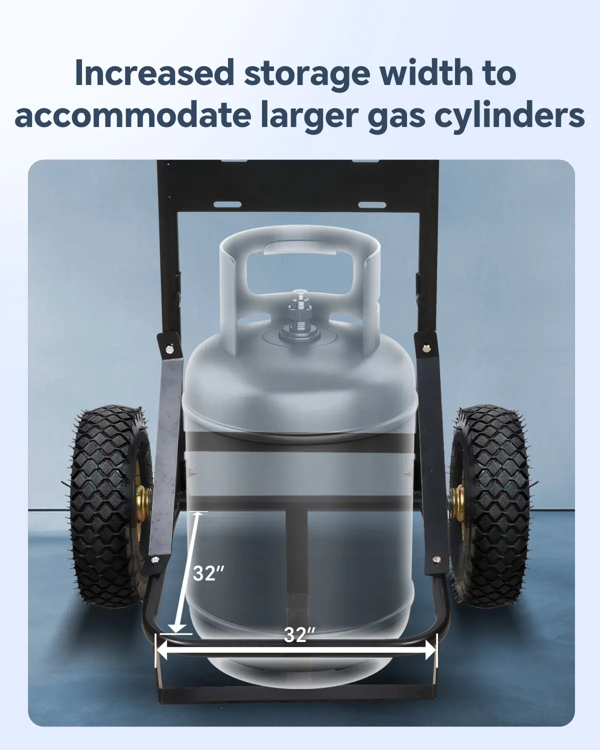 Durable Steel Construction: The cart features a sturdy steel frame, allowing you to easily and safely transport your portable tankless water heater to any desired location. Additionally, the foldable bottom shell with securing chains ensures a secure fit for a standard 20-pound propane tank.
