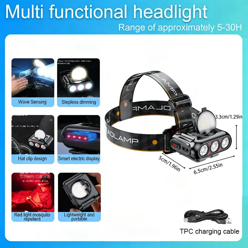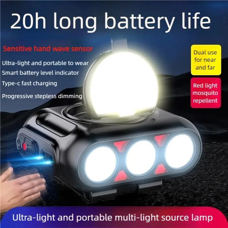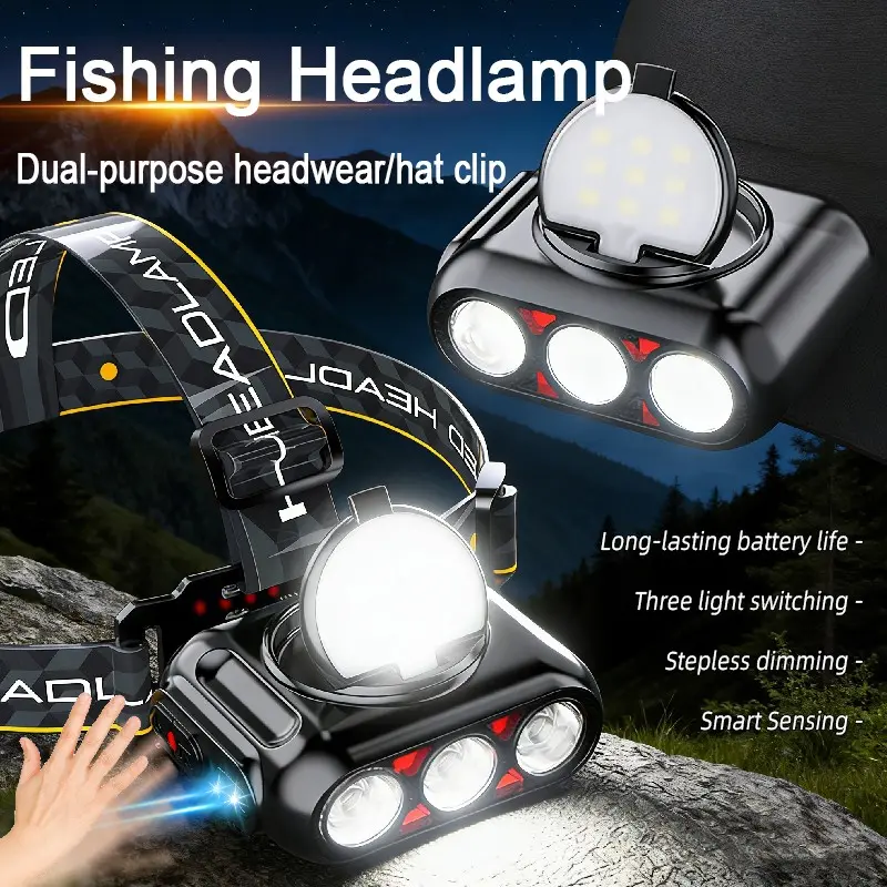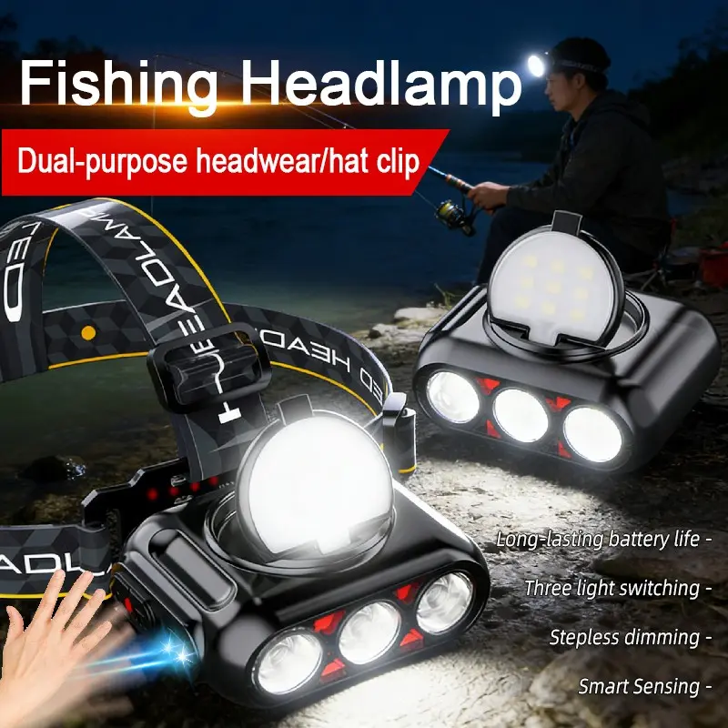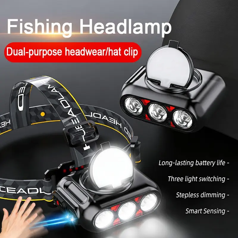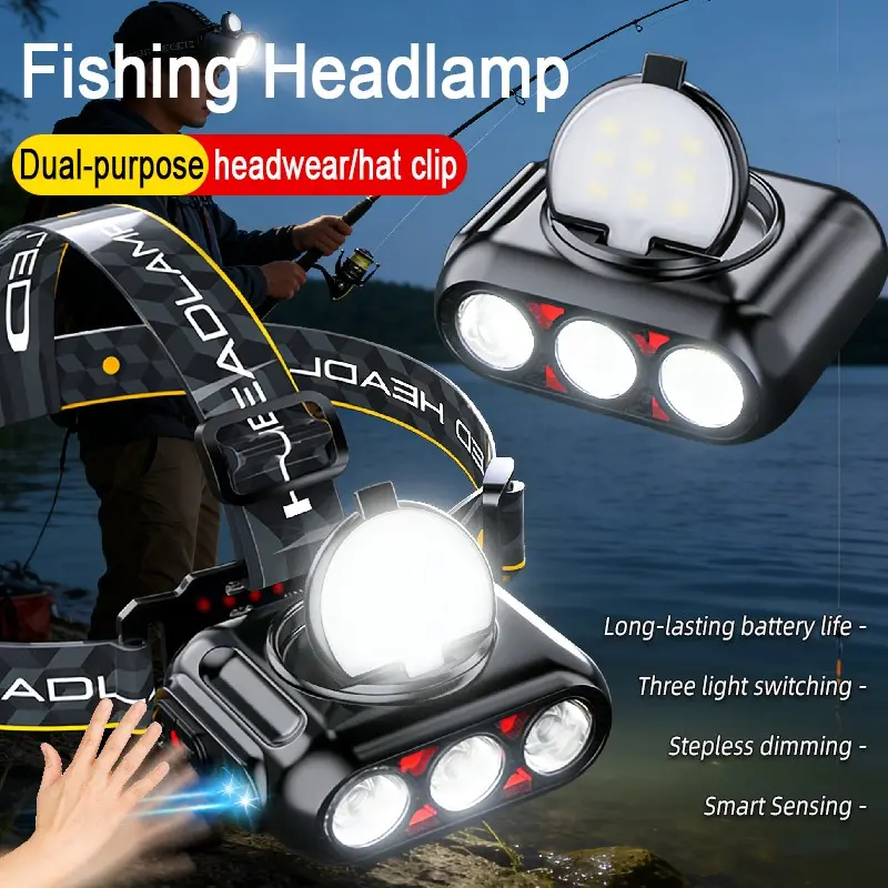 Headlamp Fishing Hat Clip Light Induction Night Fishing Lamp Long Battery Life Headband Illumination Strong Light Rechargeable Super Bright