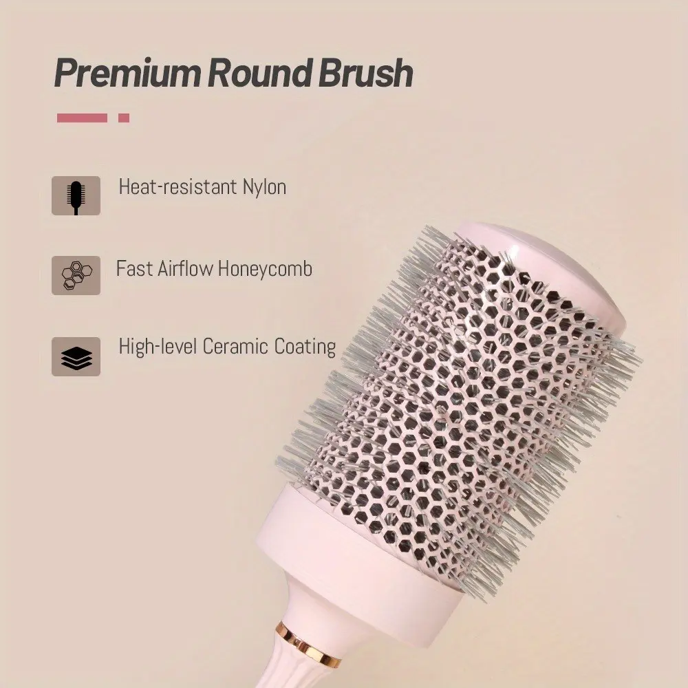 Volume Round Hair Brush Pink Ceramic-Coated Barrel Vented Round Brush for Blow Drying Heat Resistant Anti-Static Textured Handle for Styling All Hair Types