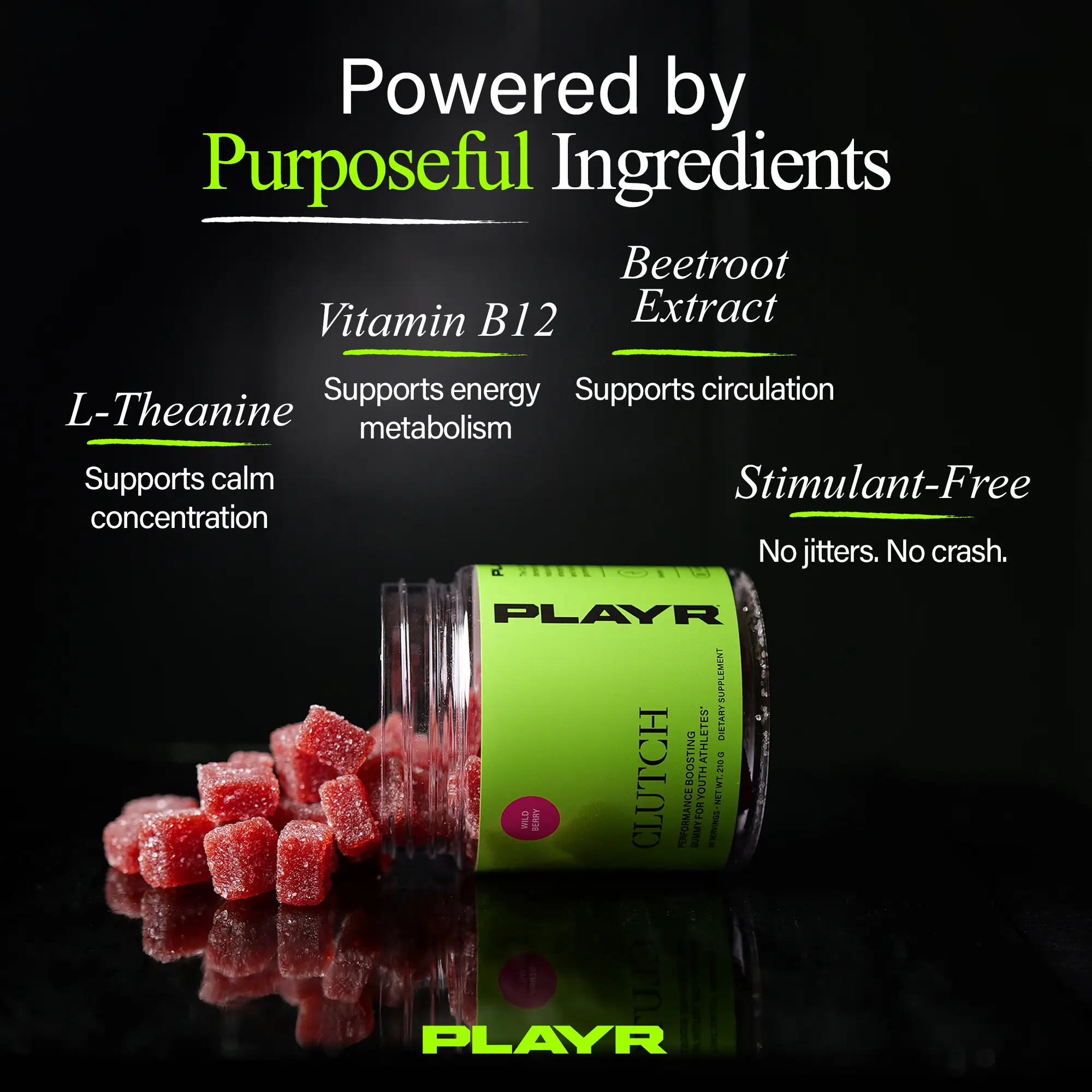 CLUTCH is a clean, stimulant-free gummy designed to help young athletes stay calm, confident, and mentally ready when performance counts most.