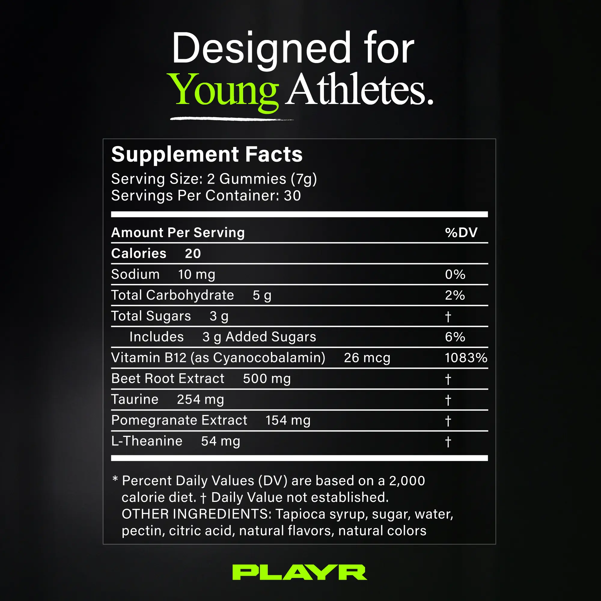 Supports normal energy production and cognitive function in active youth athletes.