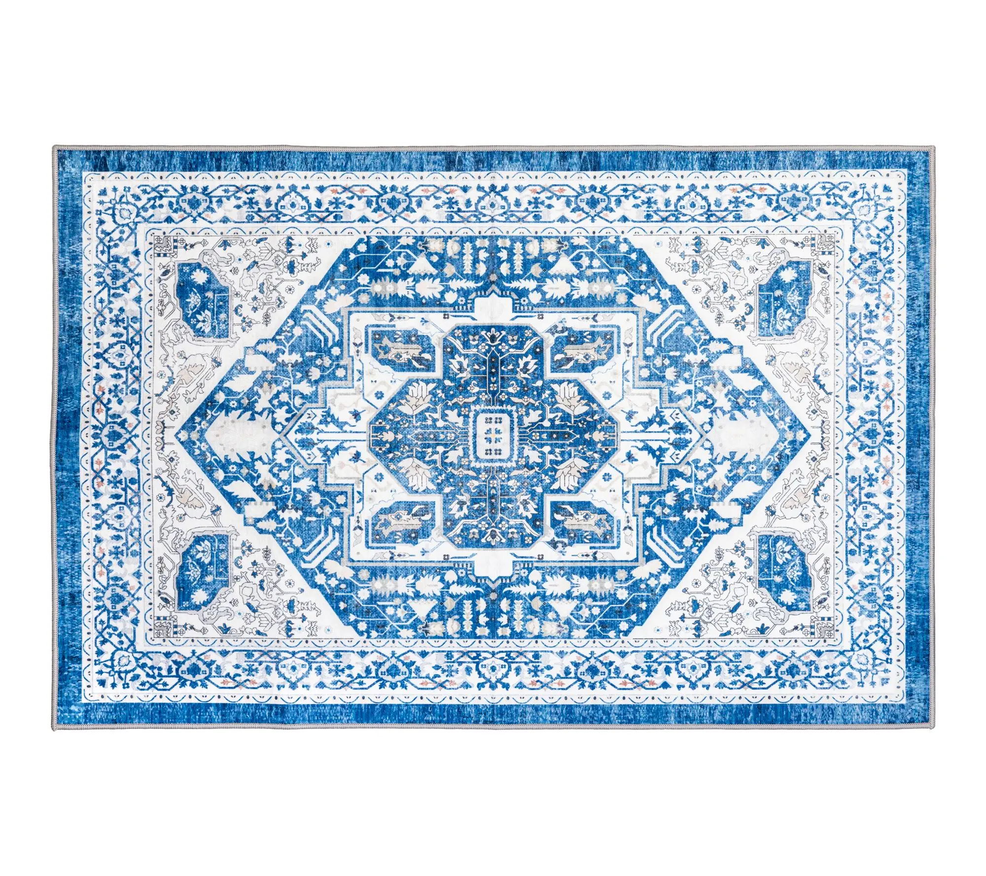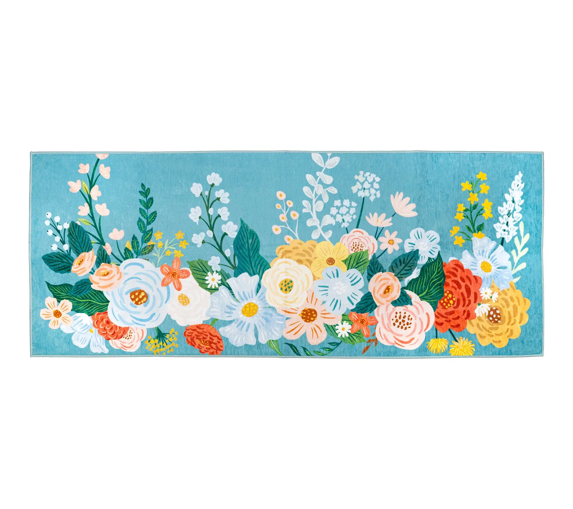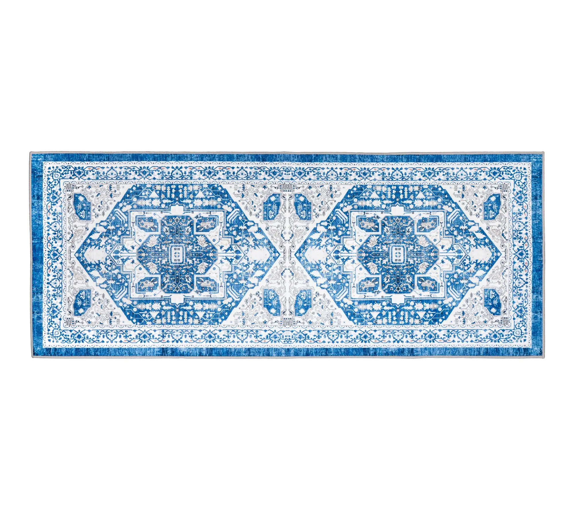 These durable Polyester indoor runners and mats ideal for use in entryways, hallways, or as a decorative accent. They are made of Polyester with a TPE backing, and are available in two color choices, Multi Floral or Blue. The set consists of a runner, 50.5" x 20.25", and a mat, 36.5" x 24.25", and are for indoor or covered porch use. They can be easily cleaned either by hand or by machine with mild soap and cold water. No bleach. Air dry flat. Do not machine dry.