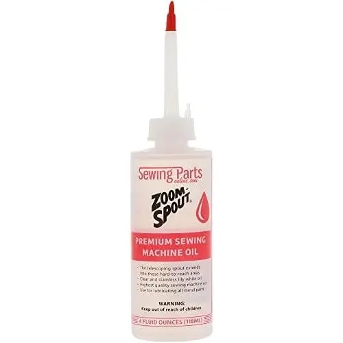 Sewing Machine Oil with Zoom Spout Oiler | 4FL OZ of Stainless Lily White Oil with Flexible Telescoping Spout, Ideal for Sewing and Textile Machinery - by