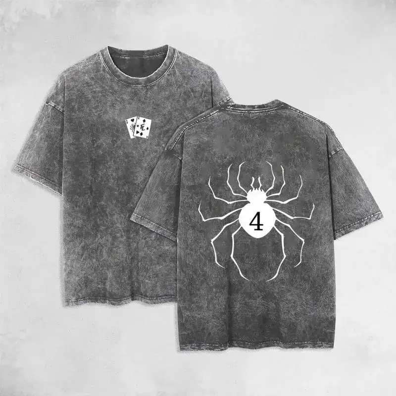 Retro Vintage Hisoka Phantom HxH Hunter x Hunter Anime Double Printed Washed T-Shirt Unisex Mineral Anime Manga Washed Heavy Cotton T-shirt