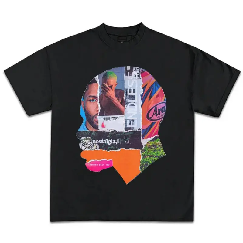 Frank Ocean Head Collage Shirt Rapper Graphic Tee Shirt Vintage Rap Hip Hop Merch Oversized Heavy Cotton Men Women Menswear Top
