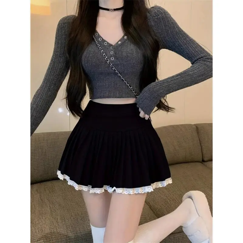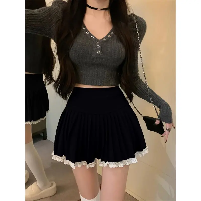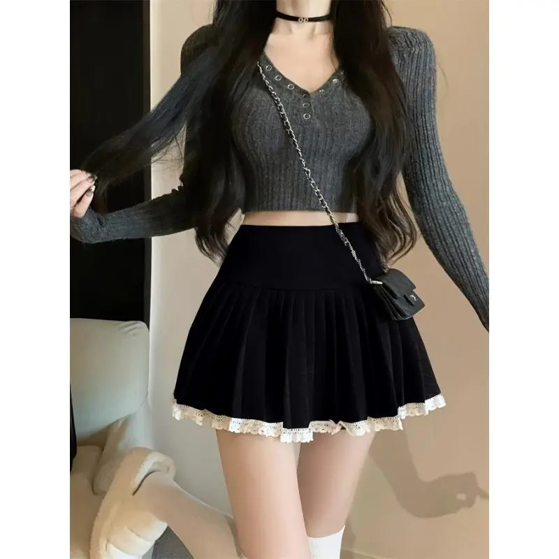 Women's high waisted pleated skirt made of soft and comfortable fabric, SweetChunkyA line autumn and winter mini skirt, ideal gift for casual wear