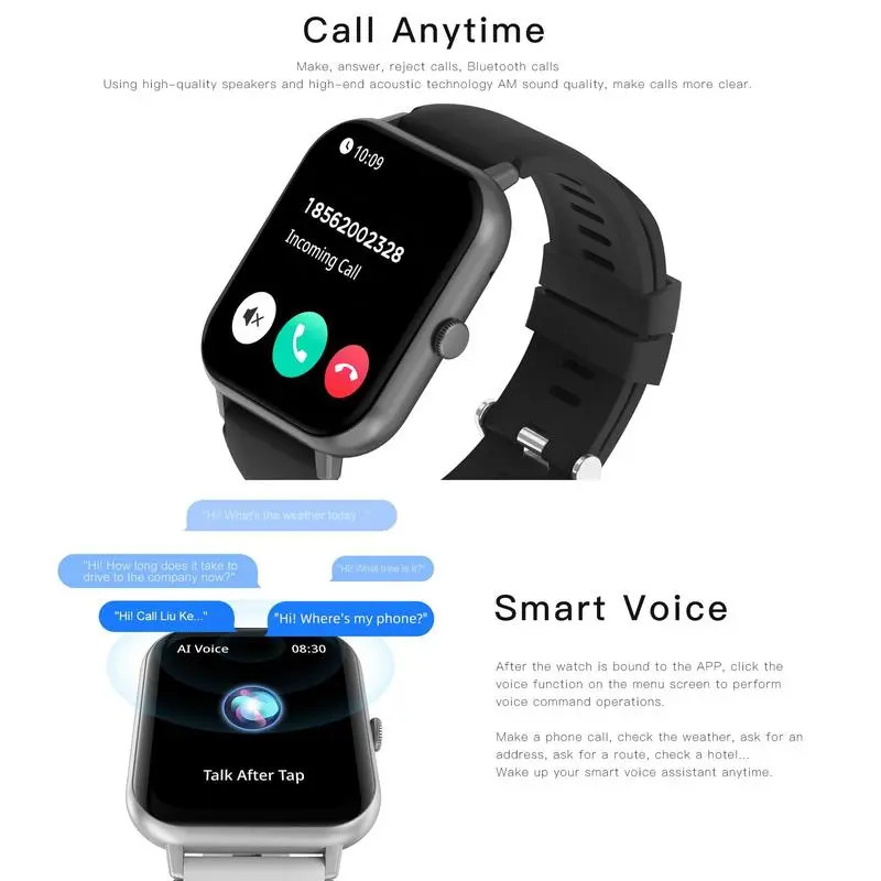 Stay on top of your health with real-time heart rate monitoring, blood oxygen (SpO2) tracking, and sleep monitoring. The smartwatch helps you understand your daily wellness and build healthier habits.
