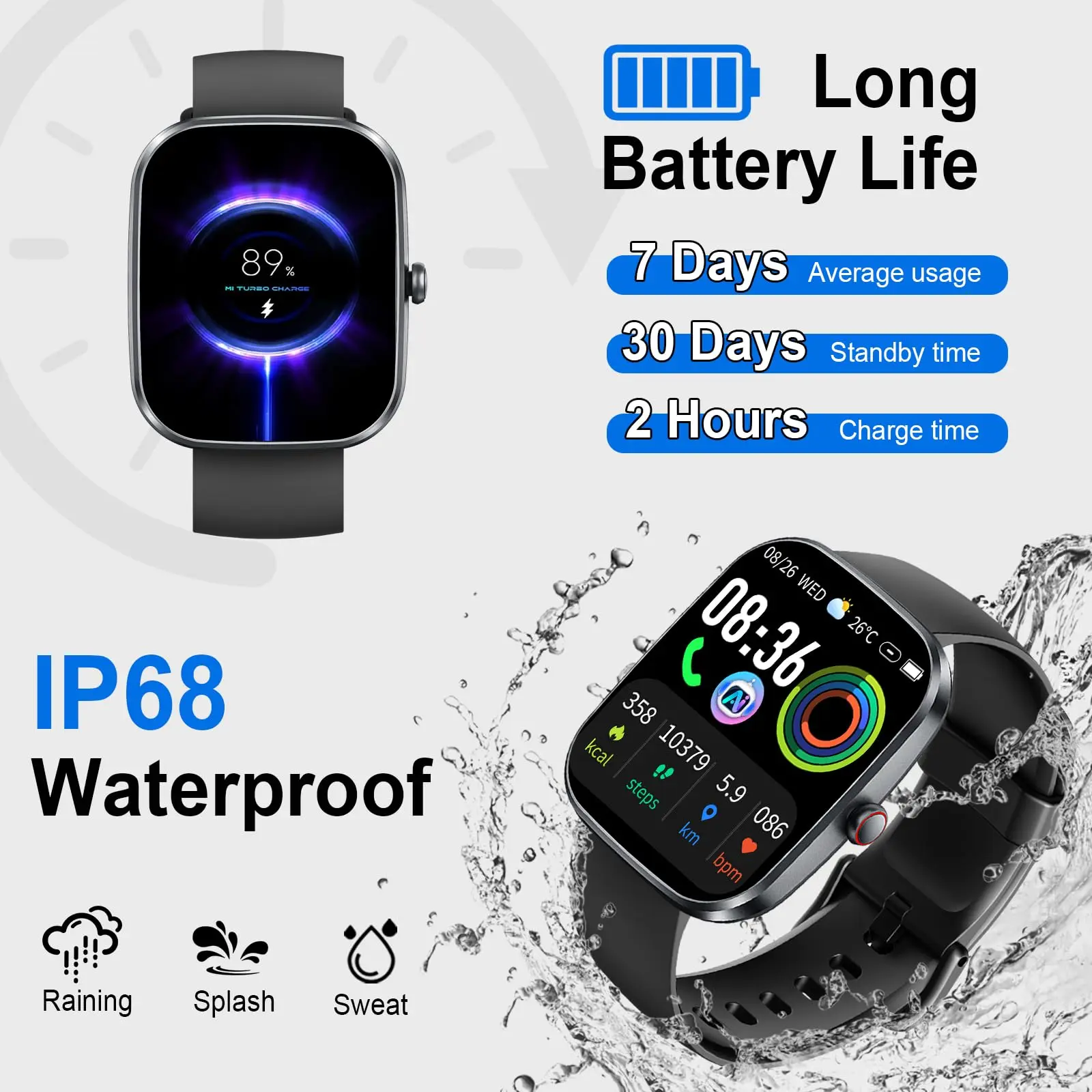 ·【Magnetic Charging, Long Battery Life & Universal Compatibility】Charge the running watch once, and it will last up to 7 days on regular use or up to 30 days on standby. Thanks to its magnetic fast-charging cable, it takes only 2 hours to fully charge. Compatible with both Android and iOS, the pedometer watch connects via Bluetooth for stable data transmission and low power consumption. Whether you're on a business trip, at the gym, or on vacation, this smartwatch is built to keep up with you.