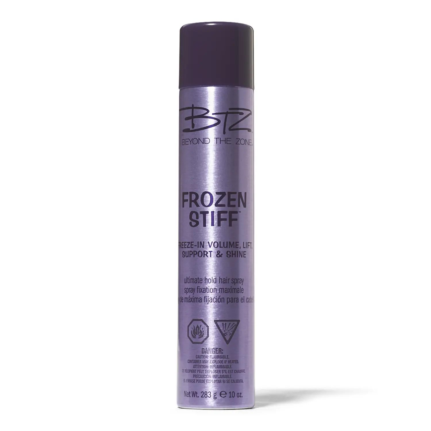 Beyond The Zone Frozen Stiff Ultimate Hold Hair Spray (10oz) provides you with a relentless humidty-resistant hold and control while freezing in volume and shine for your hair! Frozen Stiff is a versatile hairspray that works with any hair length or texture and can create a multitude of styles and looks without added weight. Gives your hair lift and dries instantly.
