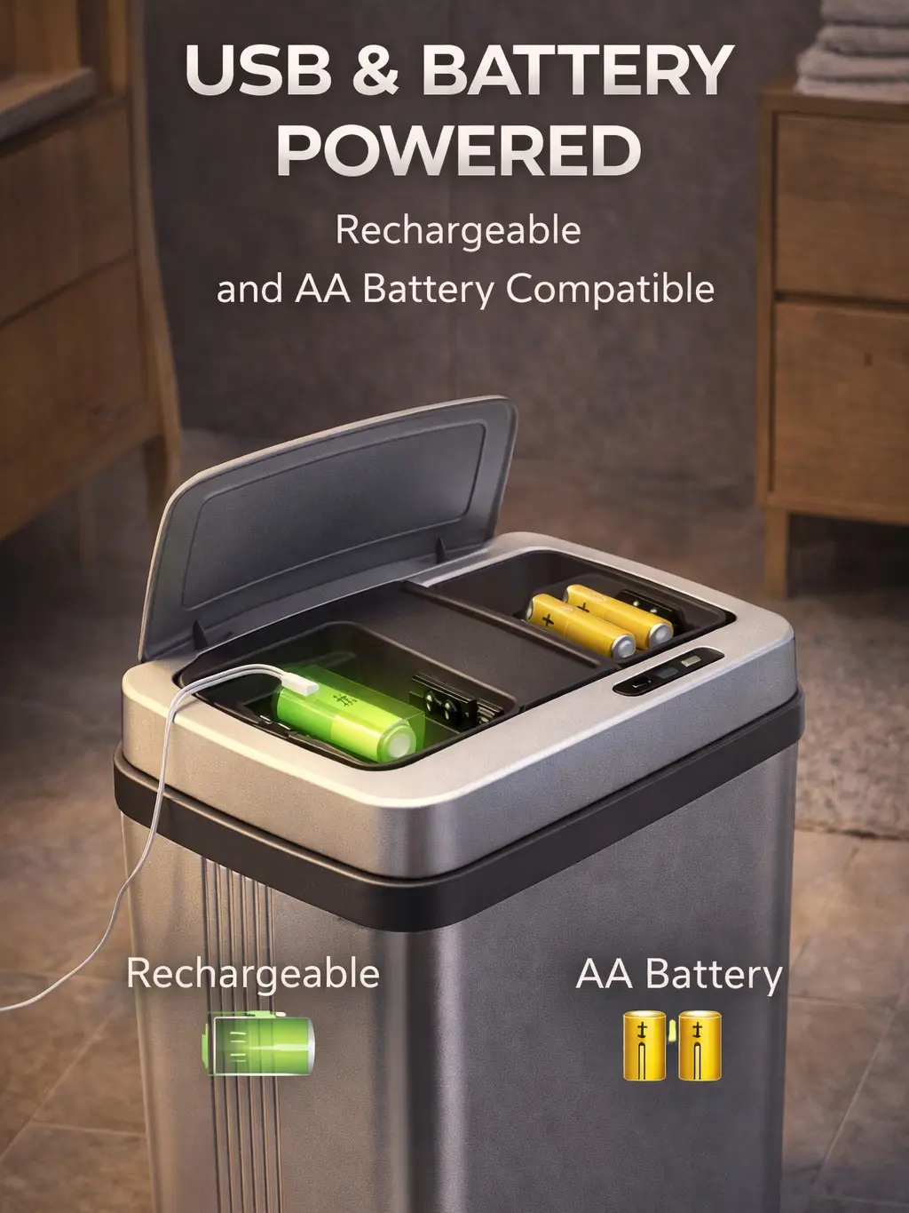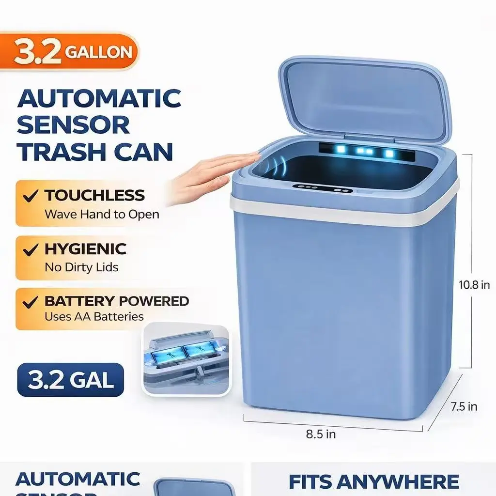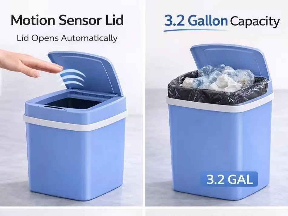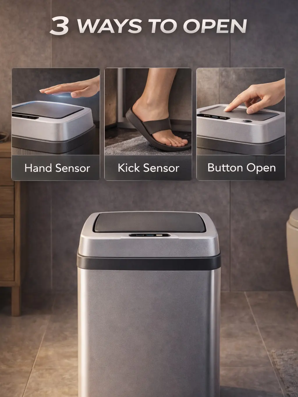 Tired of touching dirty trash can lids? Upgrade your home with this automatic sensor trash can. It opens with just a wave of your hand. Clean, convenient, and modern. Unlike traditional trash cans, this smart bin features a smooth and quiet closing system. No loud slamming. No disturbing noise. Perfect for bedrooms, offices, and bathrooms.