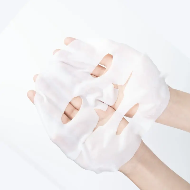 2. Take out the high-quality mask sheet, unfold it, and place it on your face. Use your fingers to gently press it down, ensuring it adheres closely to your skin.