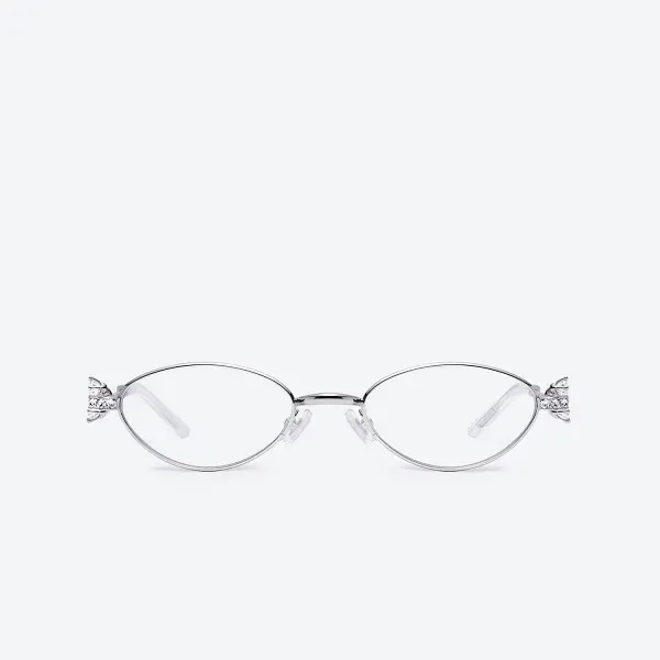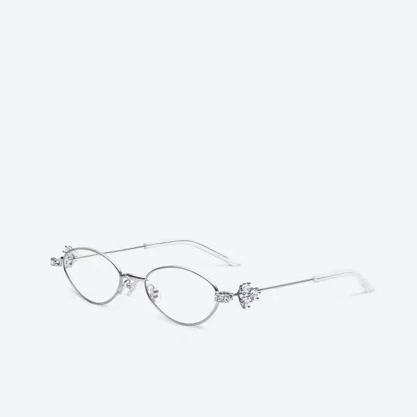Oval Sunglasses in Silver Metal, Reminiscent of Precious Jewelry