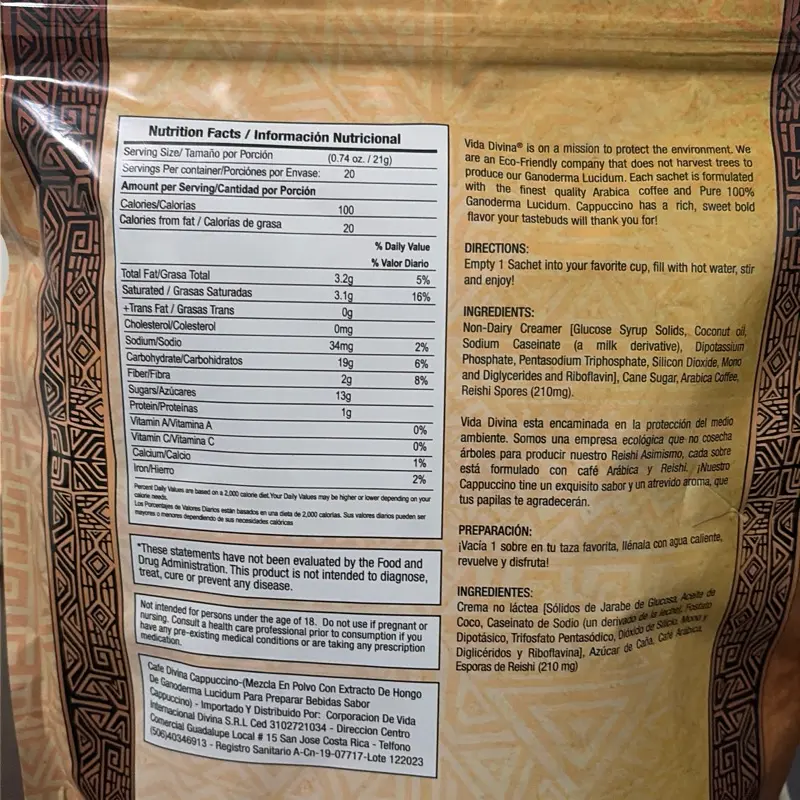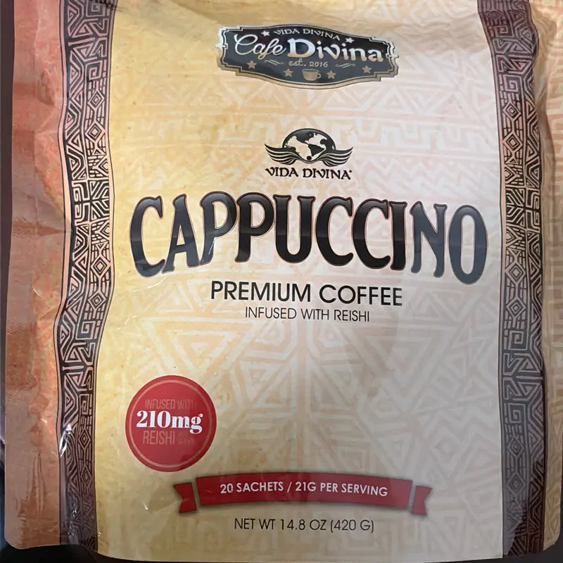 Vida Divina Cafe Divina Cappuccino REISHI Enriched with Ganoderma Lucidum Extract Premium Coffee Infused with 210mg Reishi 20 Sachets