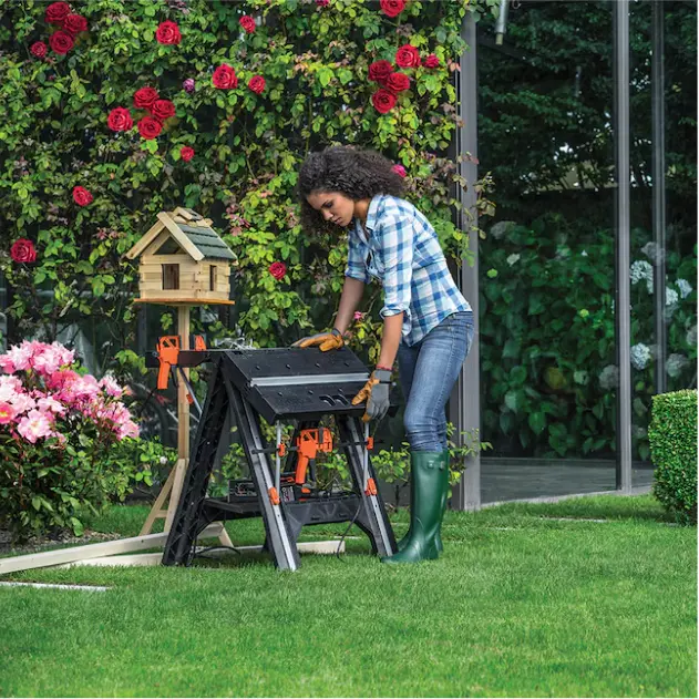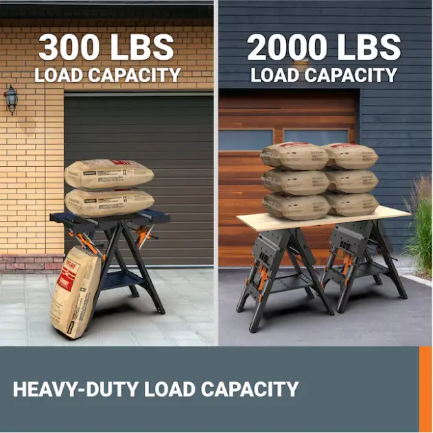 WORK TABLE AND SAWHORSE - Holds up to 300 lbs as a work table, supports 1,000 lbs as a sawhorse - and it’s easy to transition between the two