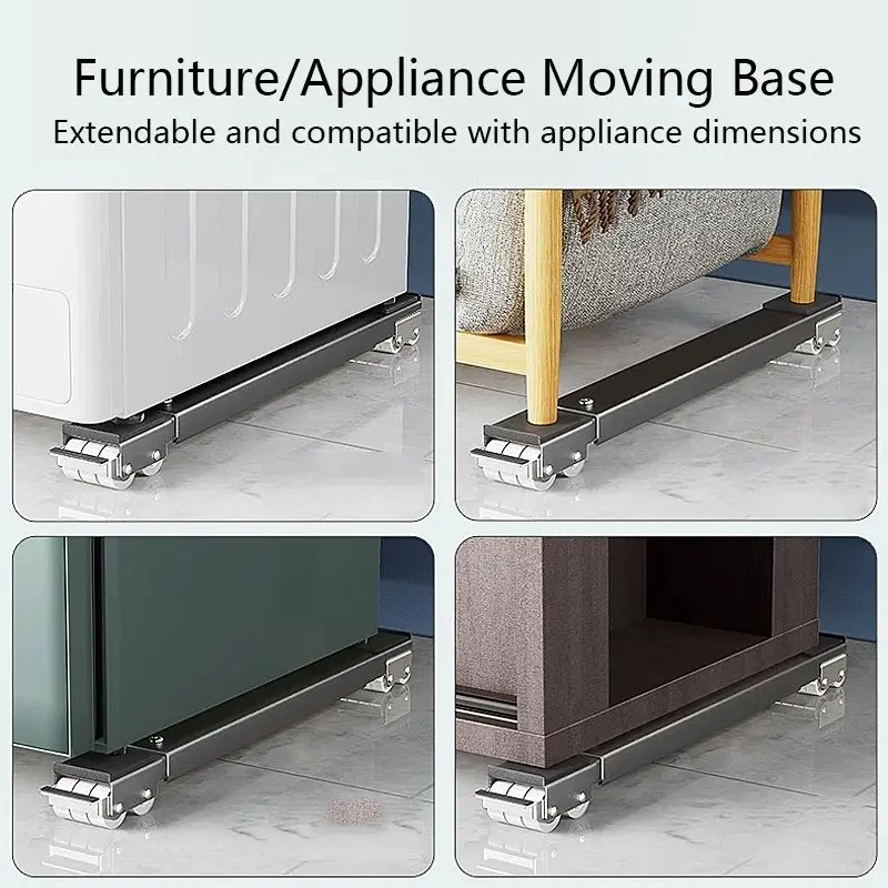 The sturdy solution for moving appliances! Fridge and washing machine adjustable height base, bearing up to 800 pounds, equipped with 24 silent casters, with locking mechanism and expandable stand, perfect for moving A
