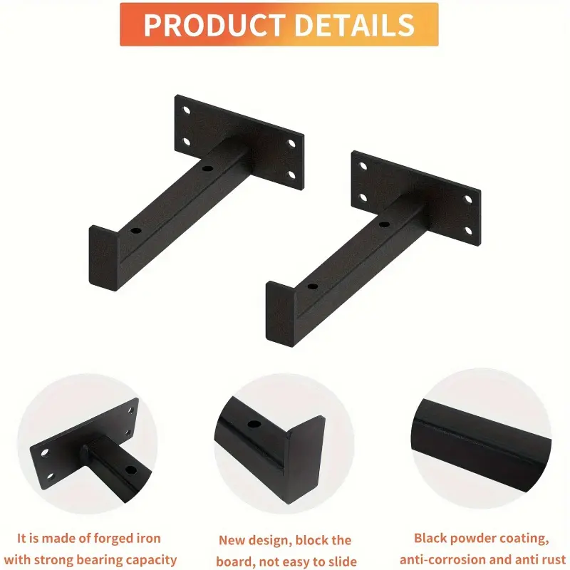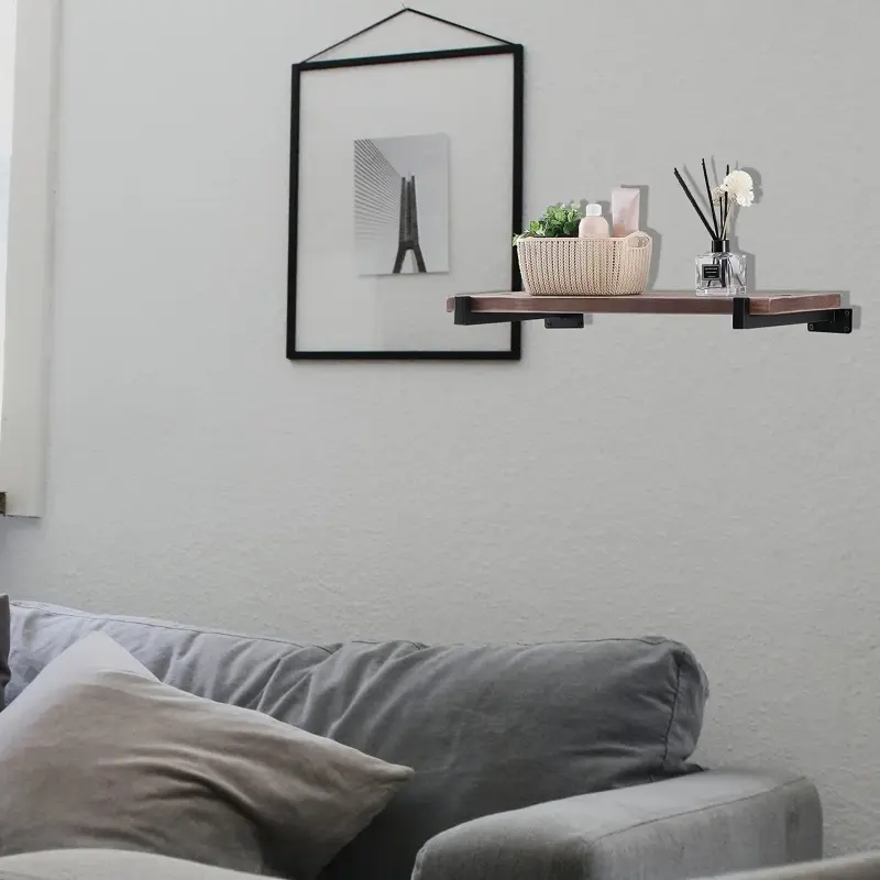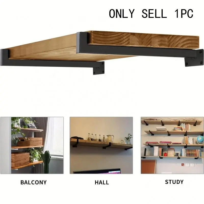 1PC Floating Shelf Brackets, Heavy-Duty Industrial Shelf Brackets, Black Metal Shelf Brackets, Wall Mounted Brackets, Multi-Functional Shelf Accessories