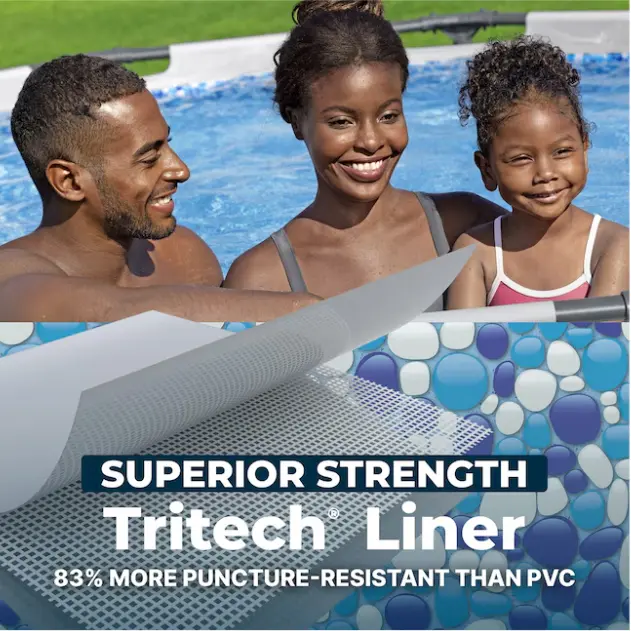 DuraPlus enhanced 3-ply PVC liner provides a support band for additional stability to the pool wall for ultimate durability