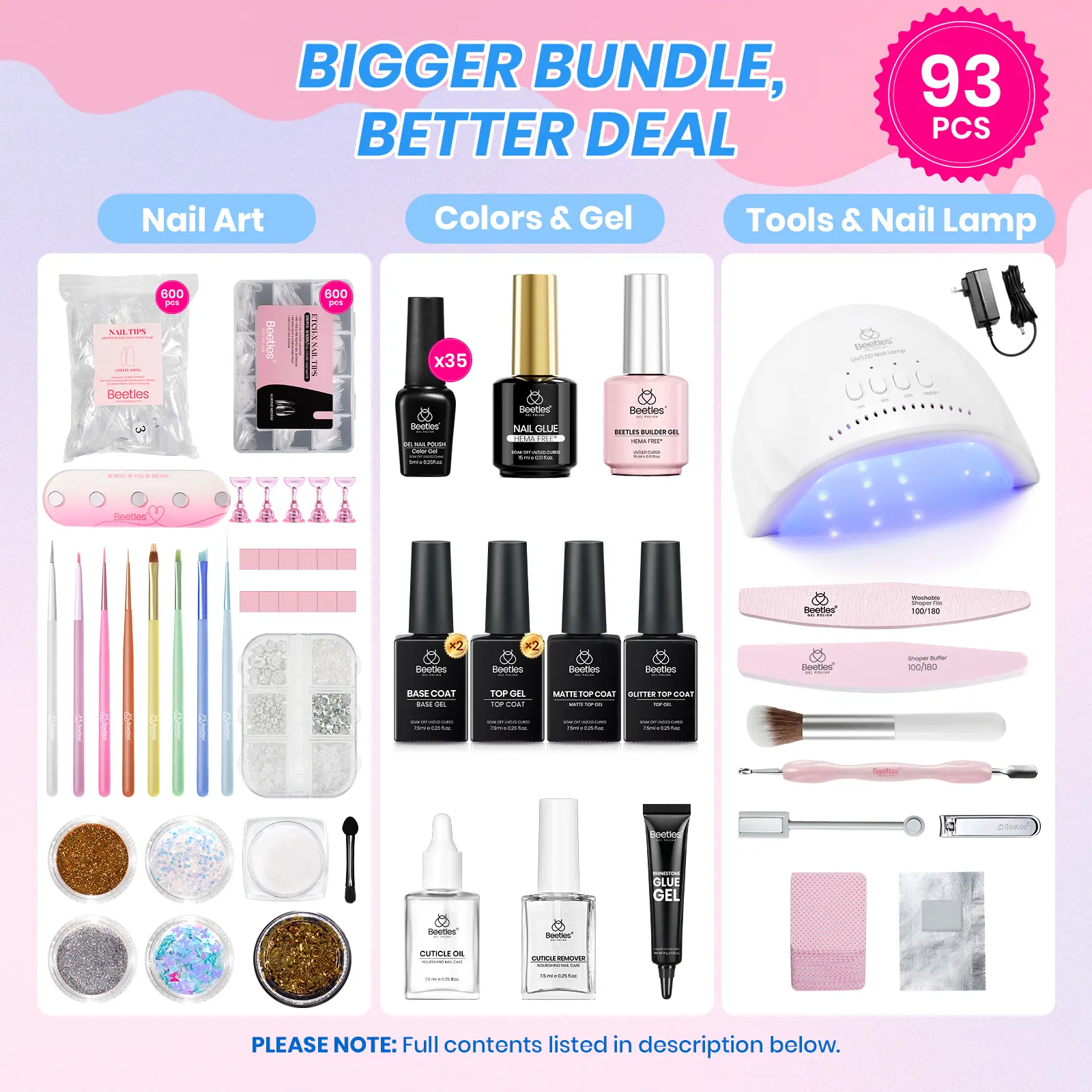 By purchasing this set, you will also receive Beetles limited time gift box, which includes sunglasses, false nail tips, nail decors, press on nails and so on. These gifts are not only practical, but also add more fun and possibilities to your nail art experience.Truly achieving "buy more" and getting better value for money.