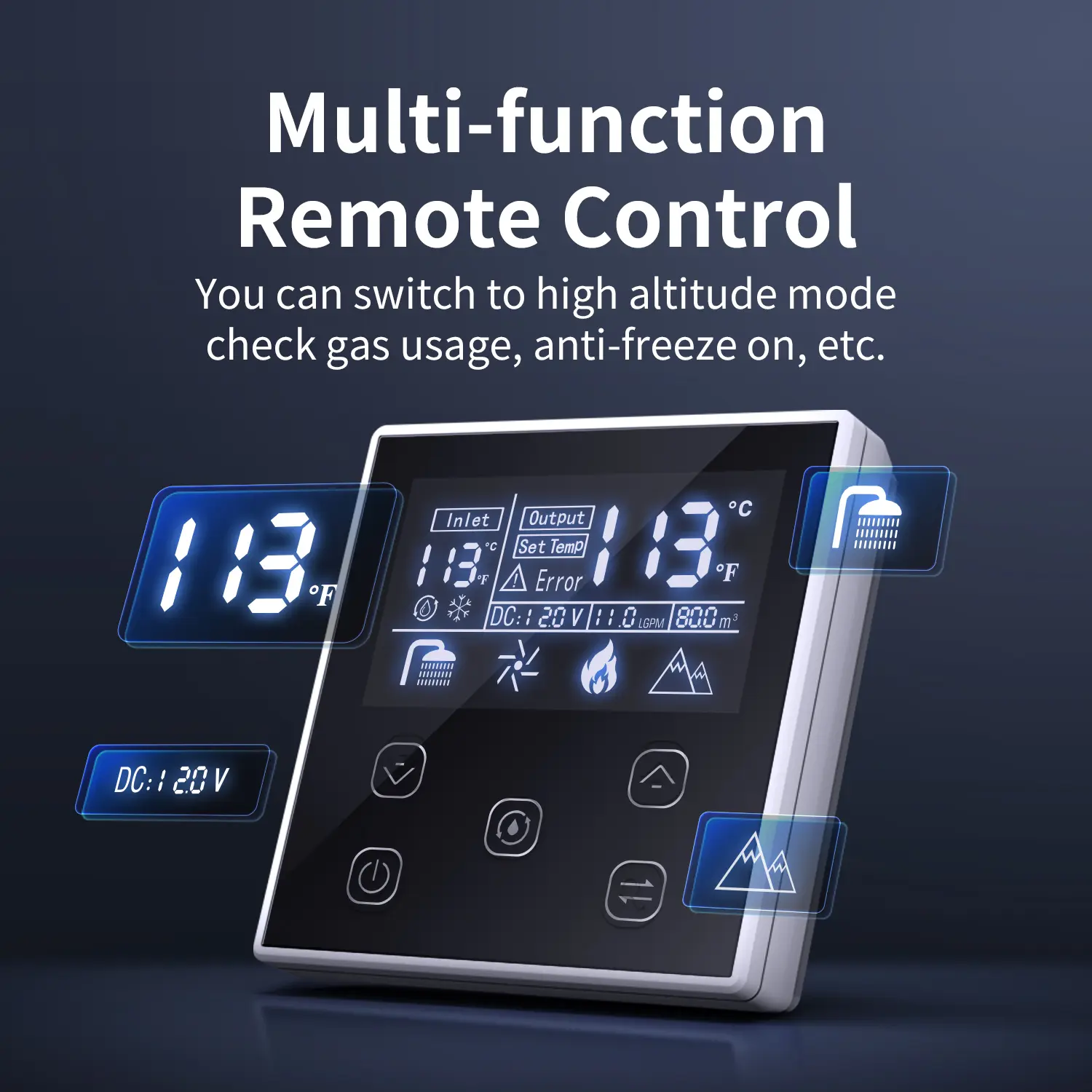 ·【We've upgraded.】On top of the original. We have upgraded the multi-function remote control. You can view gas usage, voltage, GPM, does anti-freeze device activates, and 9,800ft high altitude available.