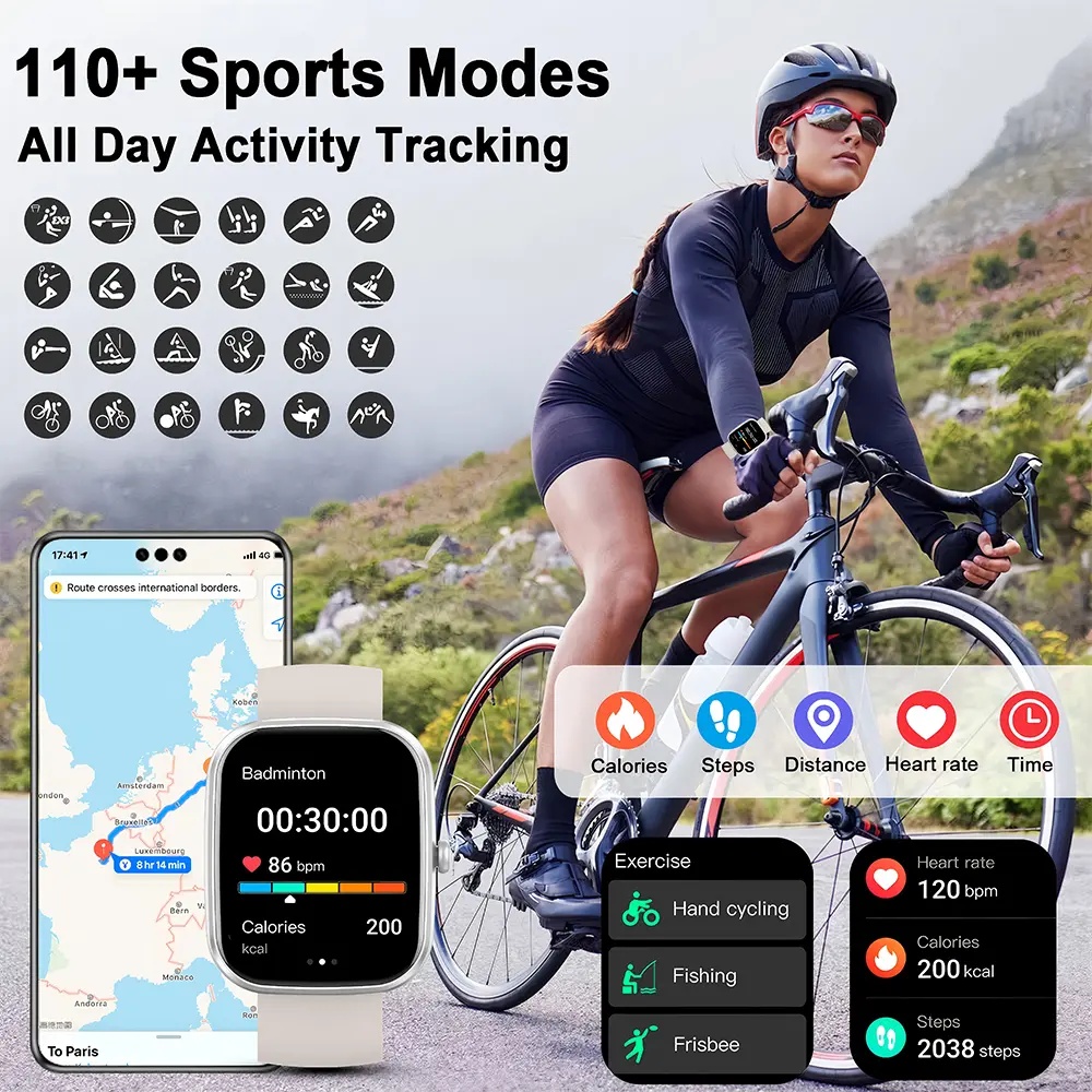 ·【110+ Sports Modes & IP68 Waterproof – Ready for Any Workout】Whether you're into walking, running, cycling, basketball, jump rope, or hiking, this android smart watch supports over 110 sports modes with accurate activity tracking. It records your workout metrics like steps, duration, calories burned, heart rate, and distance in real-time. With an IP68 waterproof rating, you can confidently wear it while sweating or in light rain. (Note: Not suitable for hot showers or swimming.)