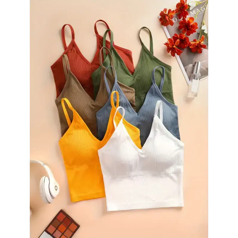5. 6-Pack Stretchy Sleeveless Crop Tops - Ribbed Tank Tops for Women, Assorted Colors, Casual Style, Comfort Fit, Multicolor Short Fabric Knit Womenswear(Sheet)