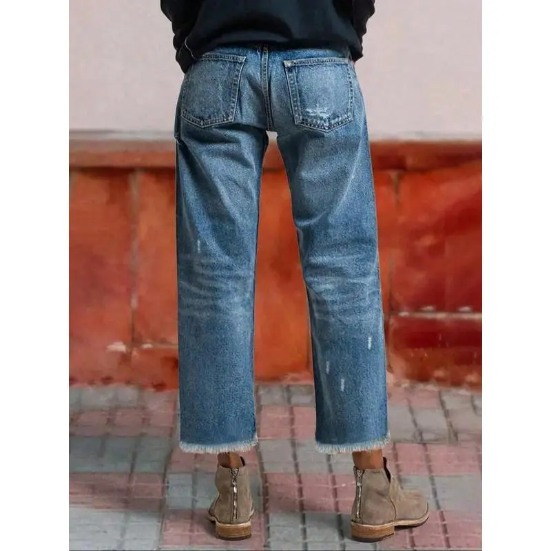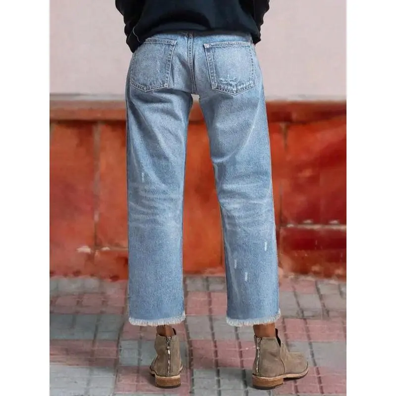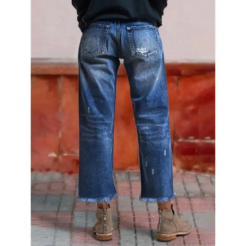 ??Unique Frayed Hem??: Features a frayed hem that adds a trendy, worn-in look, setting it apart from standard denim shorts. ??Loose Fit??: Designed with a loose fit, these pants provide ease of movement, making them suitable for any casual outing. ??All-Season Wear??: Made for all seasons, these versatile cropped jeans can be worn comfortably throughout the year. ??Plain Pattern??: Showcases a plain pattern, allowing for easy pairing with a variety of tops, enhancing your wardrobe options. ??Durable Material??: Crafted from resilient denim, ensuring long-lasting wear that withstands daily activities without sacrificing quality.