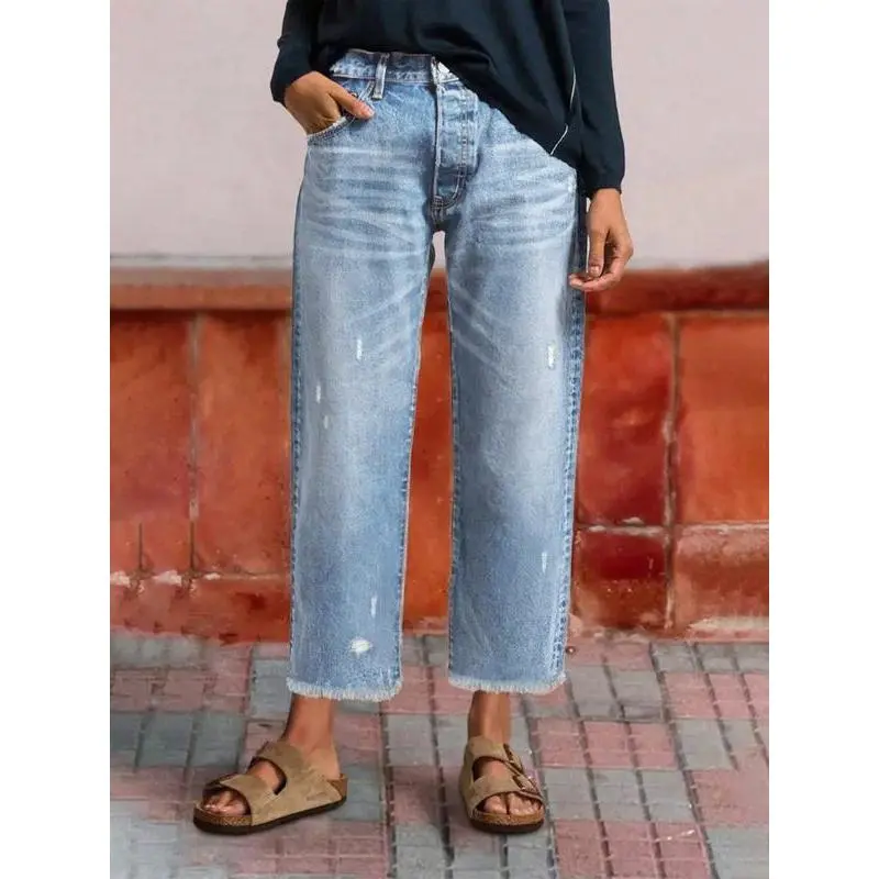 Women's Loose-Fit Denim Jeans, Casual Straight Leg Pants, All-Season Wearable, Perfect for Dating & Outdoor Activities(gift)(Sheet)