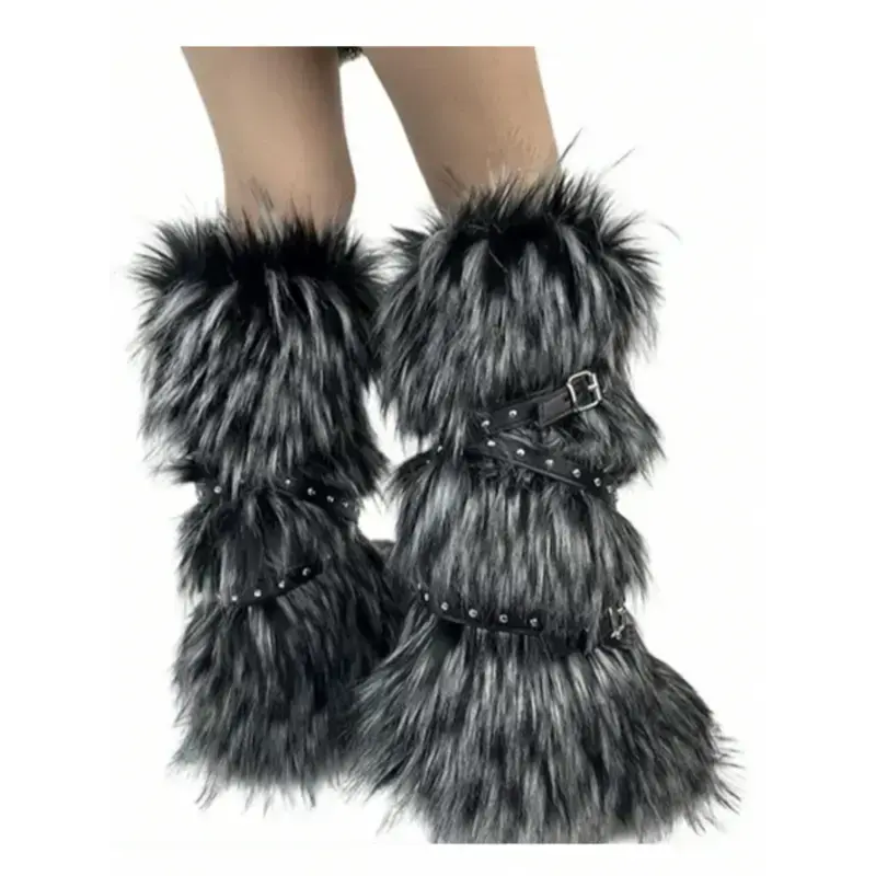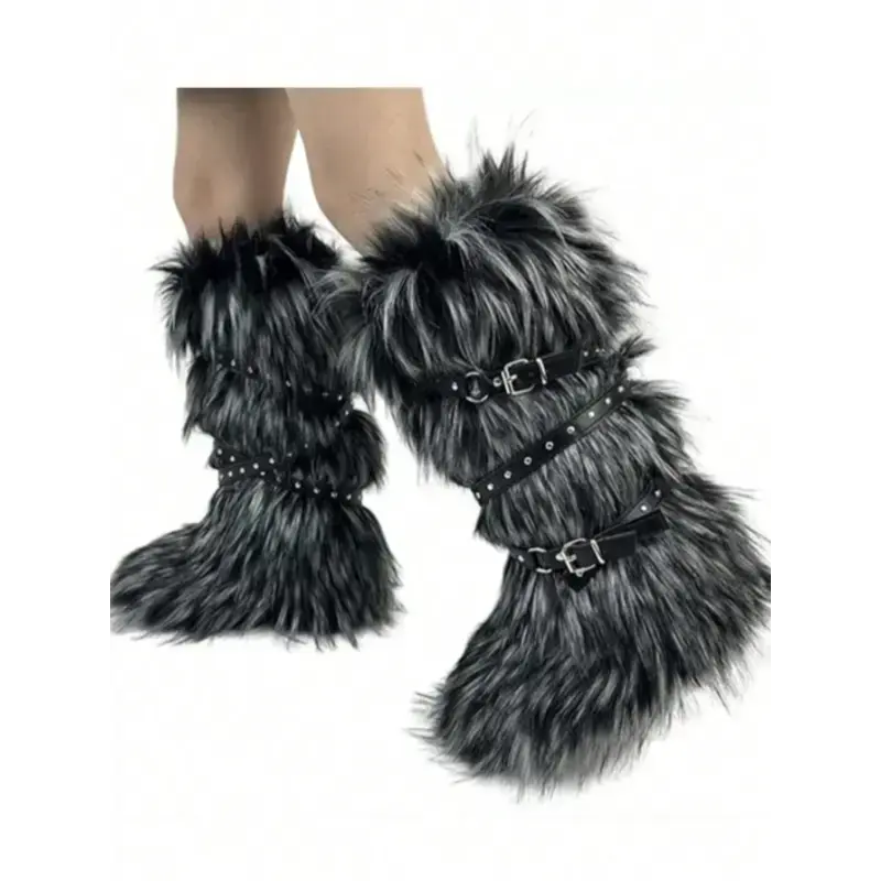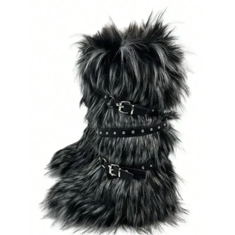 High Snow Boots Cross Belt Buckle Knee-High Boots Women Girl Footwear Design