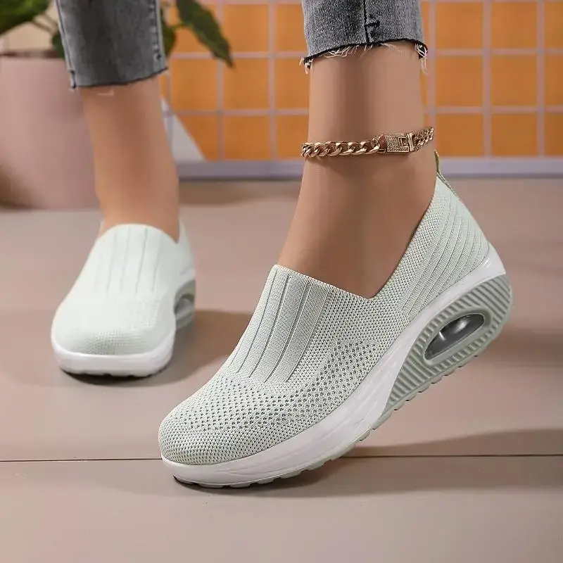 5. Women's Air Cushion Flying Woven Fashion Chunky Sneakers, Breathable Slip-on Casual Walking Shoes(gift)(Sheet)
