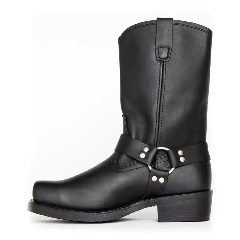5. Men'S Calf Boots Square Toe Tube Surface Sewing Metal Ring Elements Thick Heel Western Cowboy Style Outdoor Wear Mid-Calf Boots Men'S Boots Suitable for All Seasons Walking Shoes Footwear Closed Comfort Bota Women Decor OrthoticGi(Sheet)