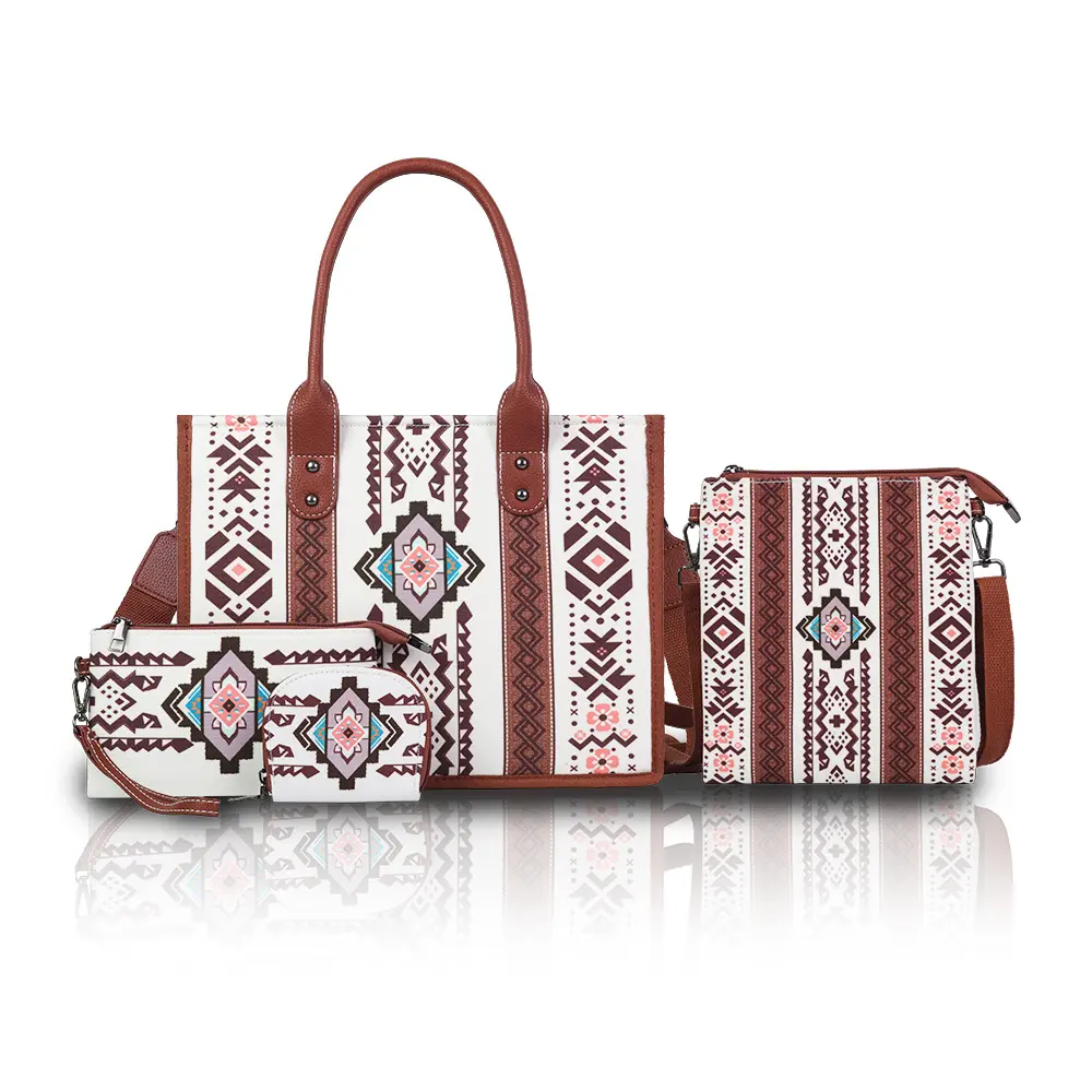 Material:Canvas UnleashYourWanderlustwithOurBohemianTribalCanvasHandbagSet Embracethefree-spiritedessenceoftheBohemianlifestylewithourexclusive4-piecehandbagset.Thiscollectionisnotjustasetofbags;it'sastatementofindividualityandanodtotherich,vibrantculturesoftheworld. 1. The design of each piece in this set features random printing designs, ensuring that no two sets are exactly alike. Bohemian tribal patterns are a harmonious blend of intricate geometric shapes, bold colors, and folklore motifs, transporting you to distant lands. Theedgepaintdetailsaddatouchofsophistication,enhancingtheoverallaestheticandgivingthebagsafinished,high-qualitylook. 2. FunctionMeetsFashion Adjustable Shoulder Strap: Whether you're rushing through the city streets or strolling along the sandy beach, the adjustable shoulder strap provides customizable comfort. Itallowsyoutowearthehandbagcross-bodyforhands-freeconvenienceduringtravelorswitchtoasingle-shoulderstyleforamorestylish,laid-backlook. ZipperClosure:Securityiskey,andthezipperclosureoneachbagensuresthatyourvaluablesstaysafe.Nomoreworryingaboutitemsfallingoutasyougoaboutyourday. LargeCapacity:Spaciousenoughtocarryallyouressentials,thesebagsareperfectfortravel.Themainhandbagcaneasilyholdyourtablet,abook,awallet,awaterbottle,andmore.Theincludedwalletisalsodesignedwithmultiplecompartments,keepingyourcards,cash,andIDorganized. 3. QualityMaterials Craftedfromdurablecanvas,thesebagsarebuilttolast. Canvasisnotonlystrongbutalsohasanatural,earthytexturethatcomplementstheBohemiantheme. Andwhenitcomestomaintenance,it'sabreeze. You can choose to hand wash or dry clean, making it suitable for your busy lifestyle. 4. Ideal for Every Occasion This Handbag Set is Not Just for Travel. Itmakesanexcellentgiftforthefashion-forwardfriend,theglobetrotter,oranyonewhoappreciatesunique,high-qualityaccessories. Whetherit'sabirthday,anniversary,orjustatokenofappreciation,thissetissuretobeahit. LetourBohemianTribalCanvasHandbagSetBeYourCompanionOnYourNextAdventure, Adding a Touch of Style and Functionality to Your Journey!