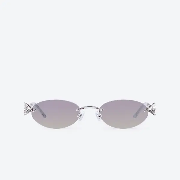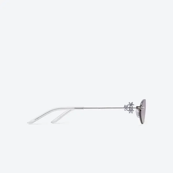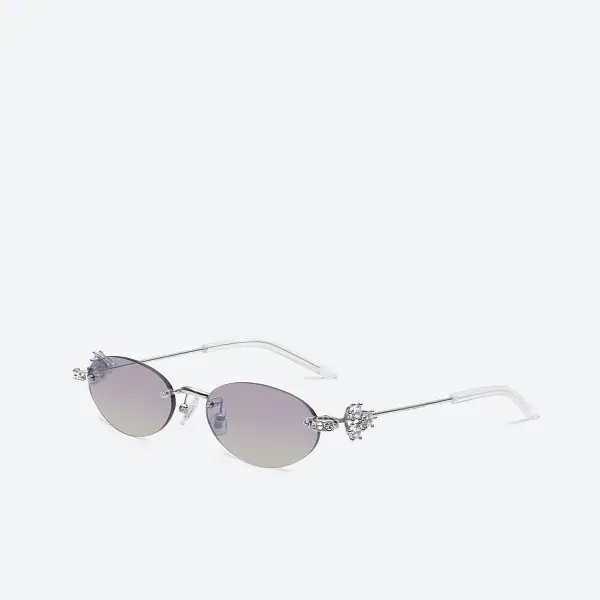 Oval Sunglasses in Silver Metal, Reminiscent of Precious Jewelry