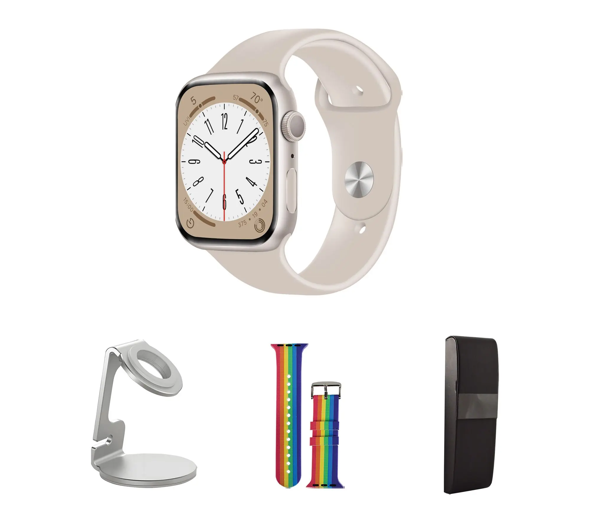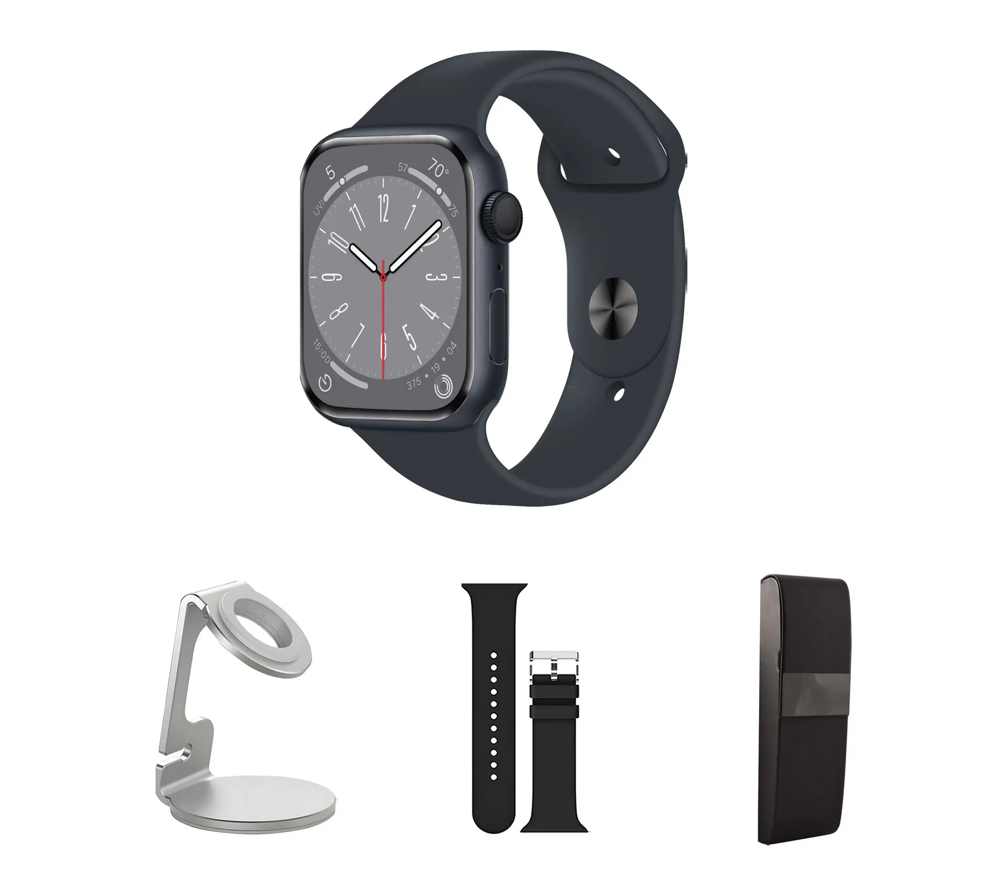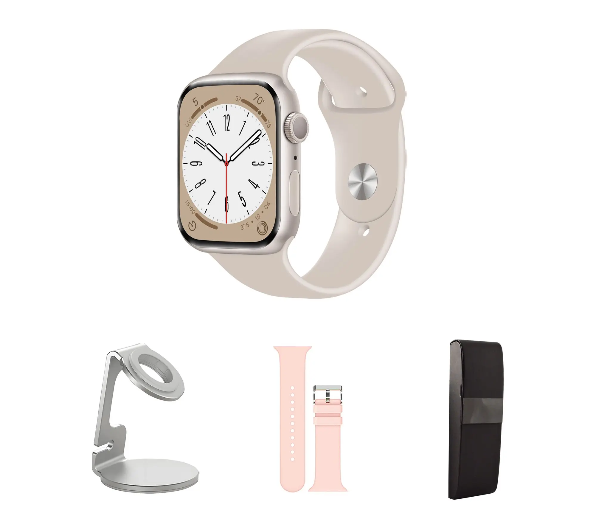 ·Includes refurbished 2nd-generation Apple Watch SE 40mm with medium/large band and magnetic charging cable; charging stand, additional silicone band, and hard case