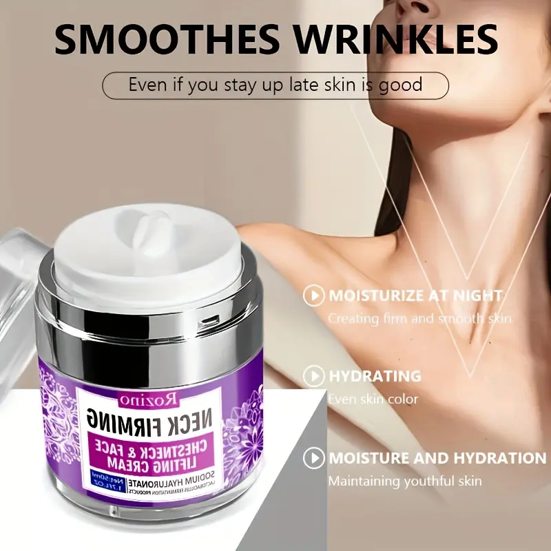 Say Goodbye to "Tech Neck" Your daily skincare routine shouldn't stop at your jawline! The Rozino Neck & Chest Firming Cream is specifically formulated to target the delicate skin on your neck and décolletage, delivering intense moisture where you need it most.